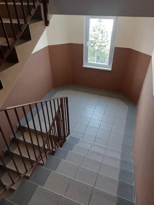 Budynek jest zadbany i dobrze utrzymany. Klatka schodowa została odnowiona ok. 7 lat temu. Docieplono front budynku. Wykonano dodatkową izolację wdmuchiwaną między stropem a dachem, co znacząco ogranicza straty ciepła i przekłada się na niższe koszty ogrzewania. Przed blokiem znajduje się parking dostępny dla mieszkańców.