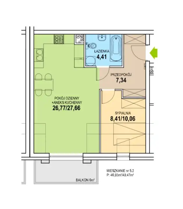- Charakterystyka mieszkania 47.31 m2, 2 pokoje