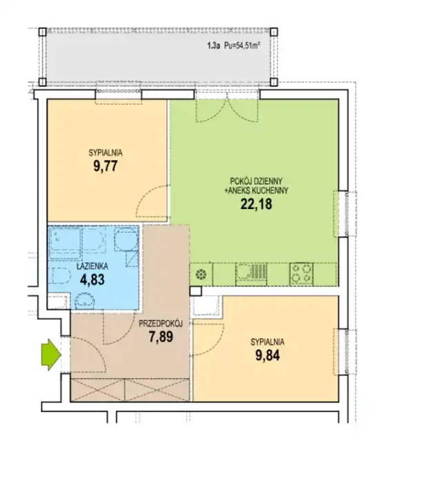 - Charakterystyka mieszkania 54.51 m2, 3 pokoje