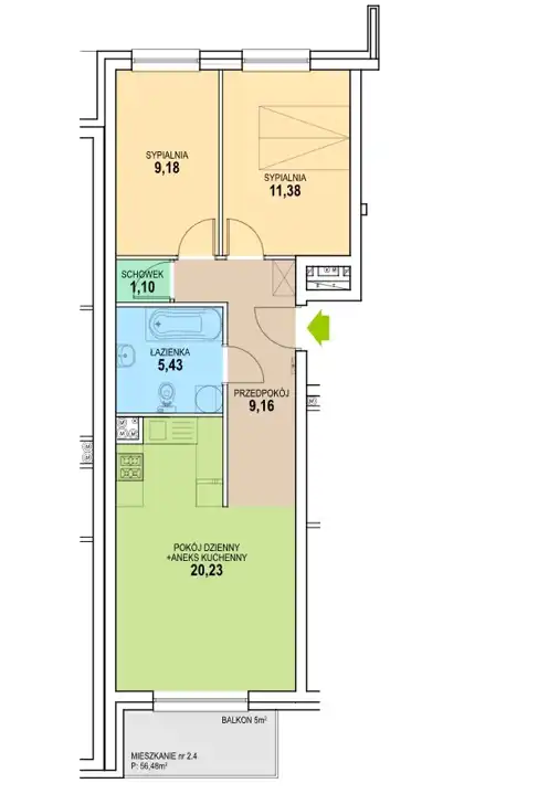 - Charakterystyka mieszkania 56.75 m2, 3 pokoje