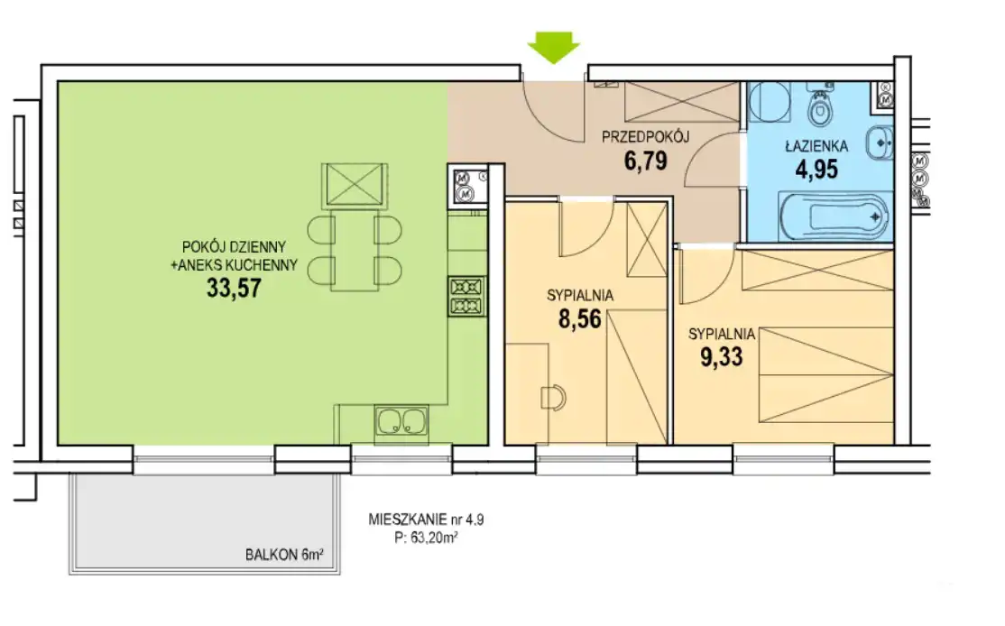 Powierzchnia podana na rzucie mieszkania może różnić się minimalnie w opisie podanym przez biuro.