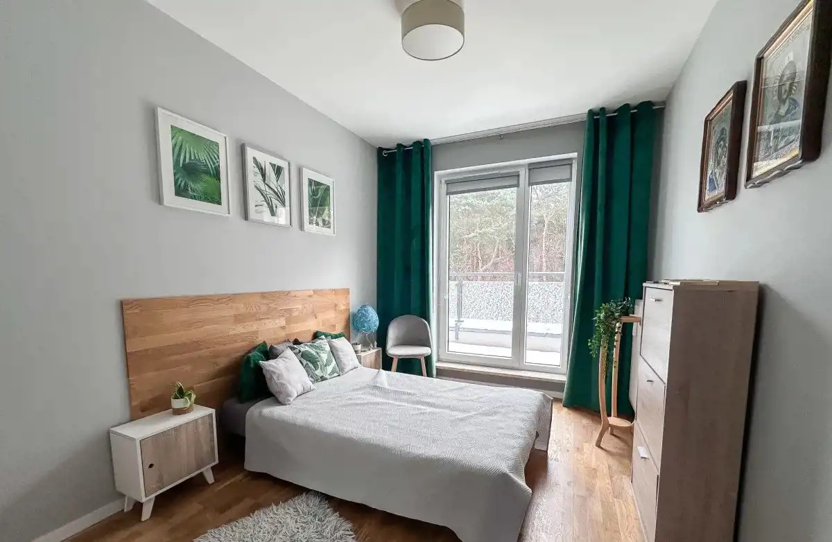 Z salonu jak i sypialni kojacy widok na drzewa a nie na inne budynki.