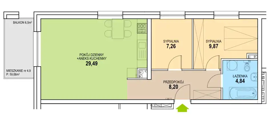 - Charakterystyka mieszkania 59.8 m2, 3 pokoje