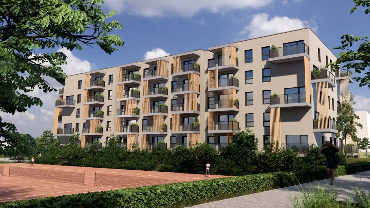 Budynek czteropiętrowy, jednoklatkowy z windą, w którym zaprojektowano w sumie 45 funkcjonalnych mieszkań o zróżnicowanej powierzchni od 45 m2 do 68 m2, z przewagą mieszkań dwupokojowych (pokój z aneksem kuchennym wraz z sypialnią).