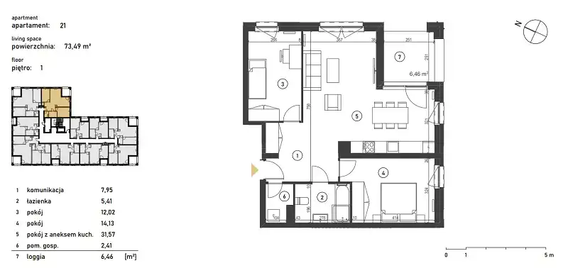 - Charakterystyka mieszkania 73.49 m2, 3 pokoje
