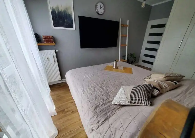 Standard wykończenia: Mieszkanie po remoncie w salonie z aneksem kuchennym ściany malowane, na podłodze panele, w sypialniach także ściany gładzone i malowanie i na podłodze panele, w łazience i wc na ścianach i w przedpokoju na podłodze gres a ściany gładzone i malowane. W mieszkaniu zamontowano rolety zewnętrzne.