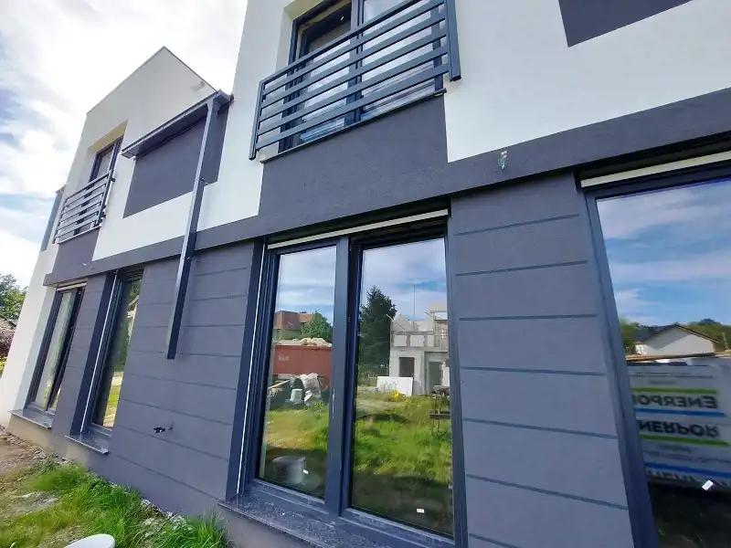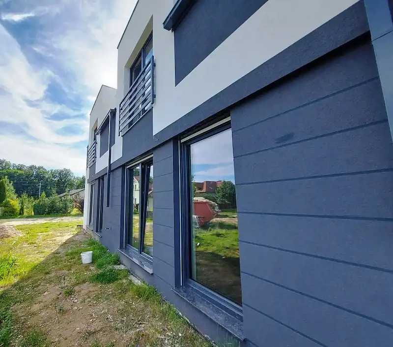 Okna trzy trzyszybowe siedmiokomorowe, żaluzje zewnętrzne z silnikiem, okna dachowe trójszybowe VELUX, dachówka cementowa płaska z 30-letnią gwarancją
