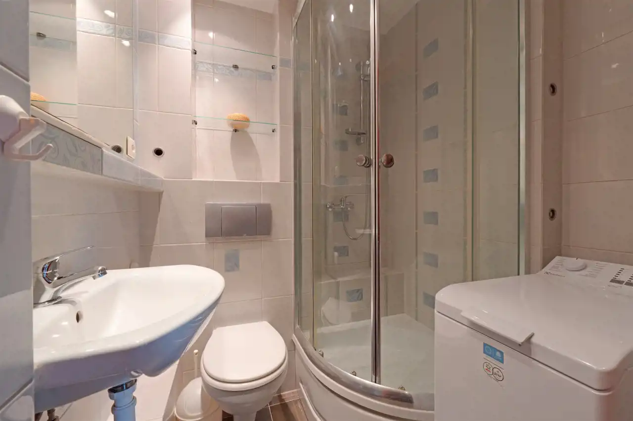 - łazienka (z prysznicem) - wyposażona w pralkę automatyczną - 2,5 m2,