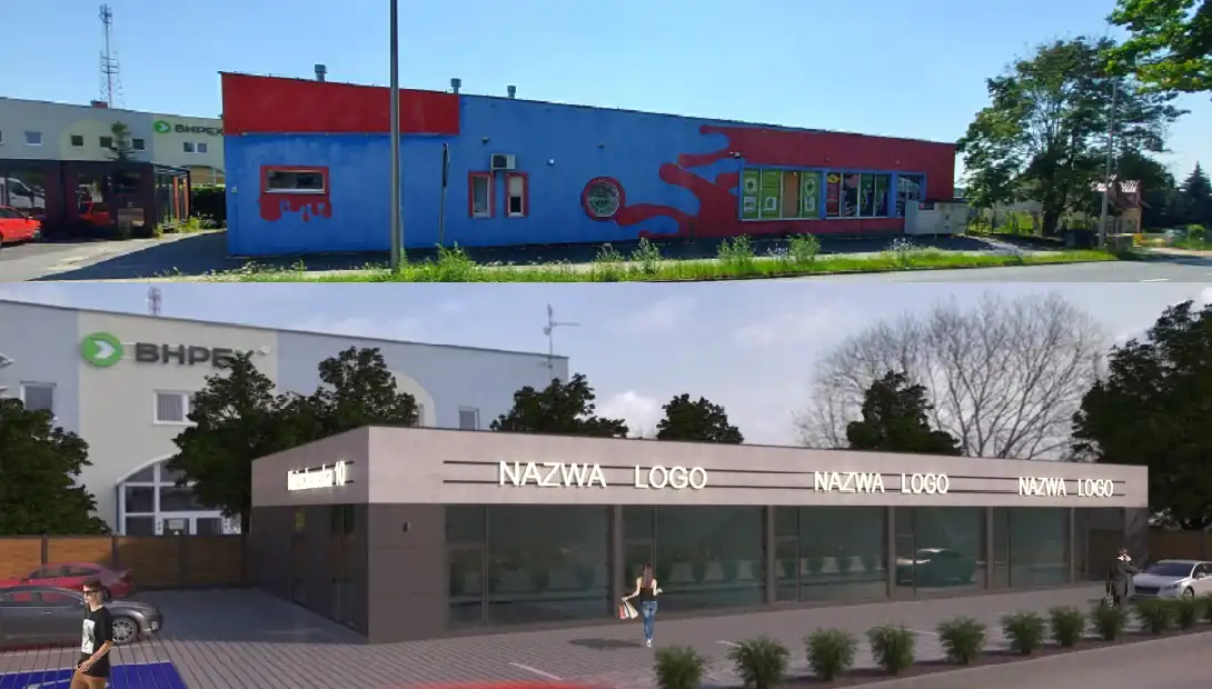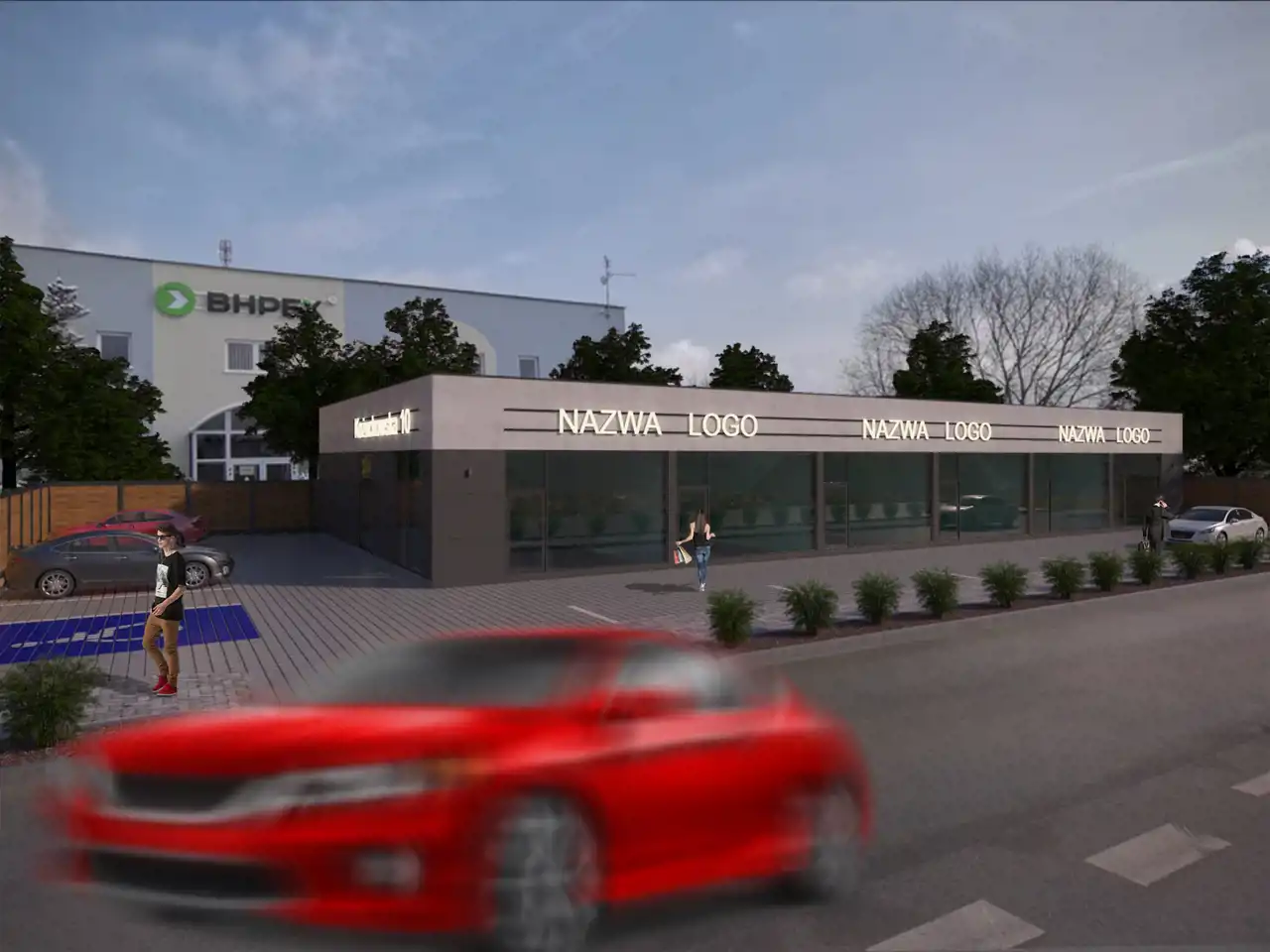 Nieruchomość sprzedawana jest wraz z projektem budowlanym oraz pozwoleniem na budowę. Widoczna na zdjęciu wizualizacja składa się z nowoczesnego budynku pod względem architektonicznym z dużymi przeszklonymi witrynami. W środku obiektu przewidziany jest projekt z podziałem na 5 pomieszczeń, tj. modułów o zróżnicowanym metrażu.