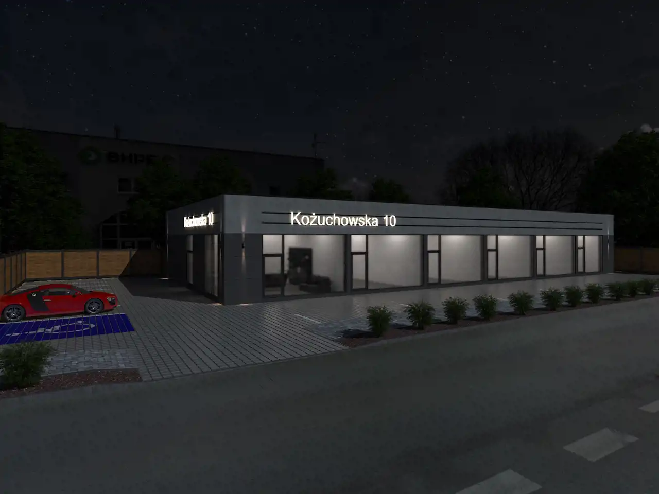 Nieruchomość może spełniać rolę mini centrum handlowego oraz budynków biurowych. Całość obiektu to 512 mkw powierzchni na które składa się z otwarta przestrzeń typu open space. Działka na której znajduje się budynek jest o metrażu 1076mkw. Przed budynkiem znajduje się parking na kilkanaście aut.