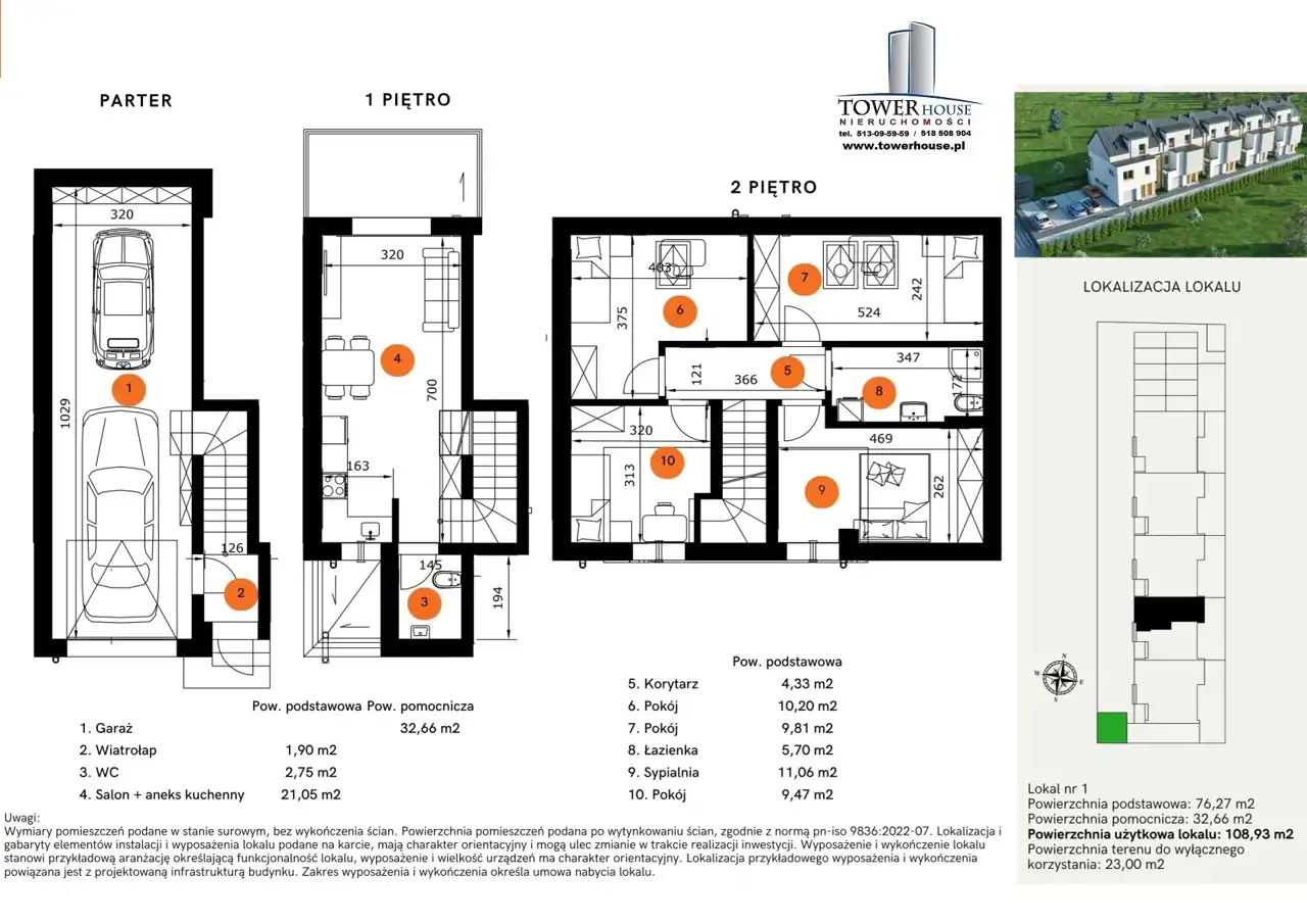 Mieszkanie usytuowane na pierwszym parterze, = piętrze piętrze i drugim piętrze posiada oddzielne wejście składa się: