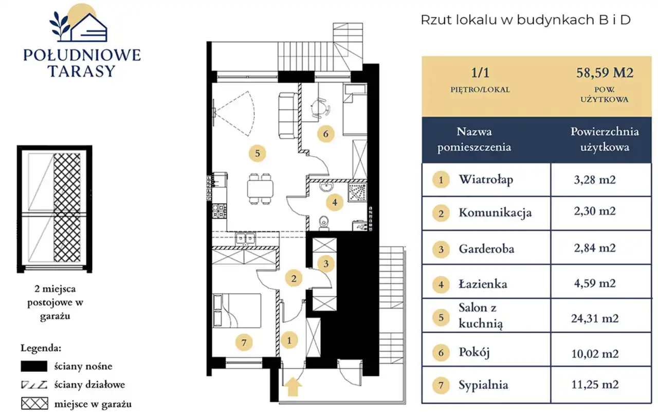 - Charakterystyka mieszkania 58.59 m2, 3 pokoje