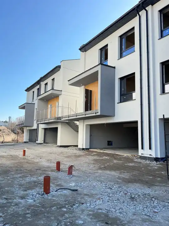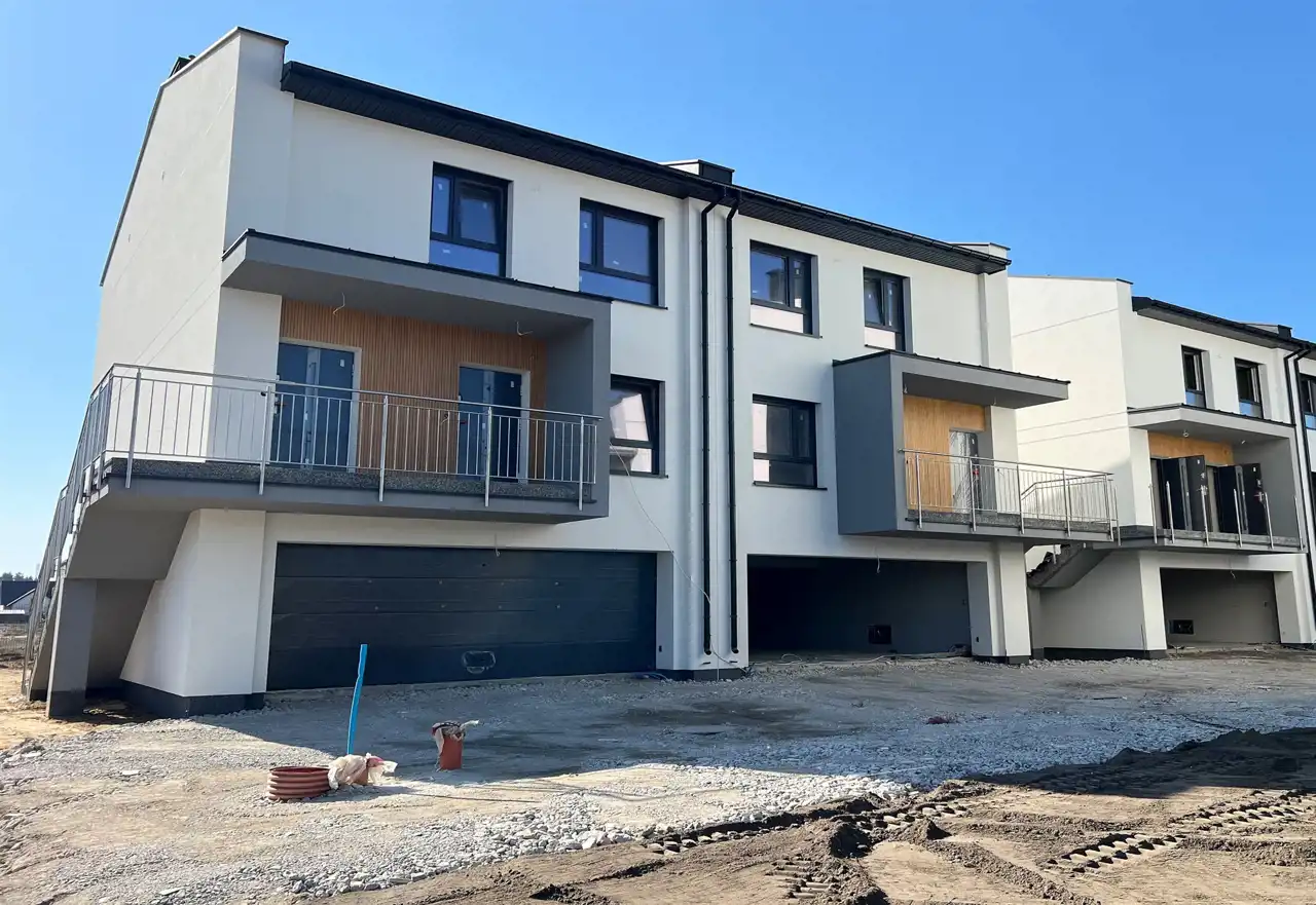STANDARD WYKOŃCZENIA: lokale sprzedawane w podwyższonym stanie deweloperskim: z rekuperacją, roletami zewnętrznymi (sterowane pilotem lub telefonem), Instalacja do klimatyzacji wyprowadzona w salonie; piec gazowy dwufunkcyjny, kondensacyjny. Ogrzewanie podłogowe w całym lokalu. Tynki wew. - gipsowe. Posadzki - anhydrytowe. Okna PCV trzyszybowe, siedmiokomorowe. Drzwi wejściowe: docieplone metalowe. Instalacje: elektryczna (bez osprzętu), gazowa, CO, wodno-kanalizacyjna, alarmowa, światłowód, rekuperacja. Zainstalowany wideodomofon z możliwością sterowania telefonem. Docieplenie budynku- styropian 20 cm. Dach - blacha na rąbek. Podjazdy i chodniki wyłożone kostką. Automatyczna brama wjazdowa i brama garażowa.