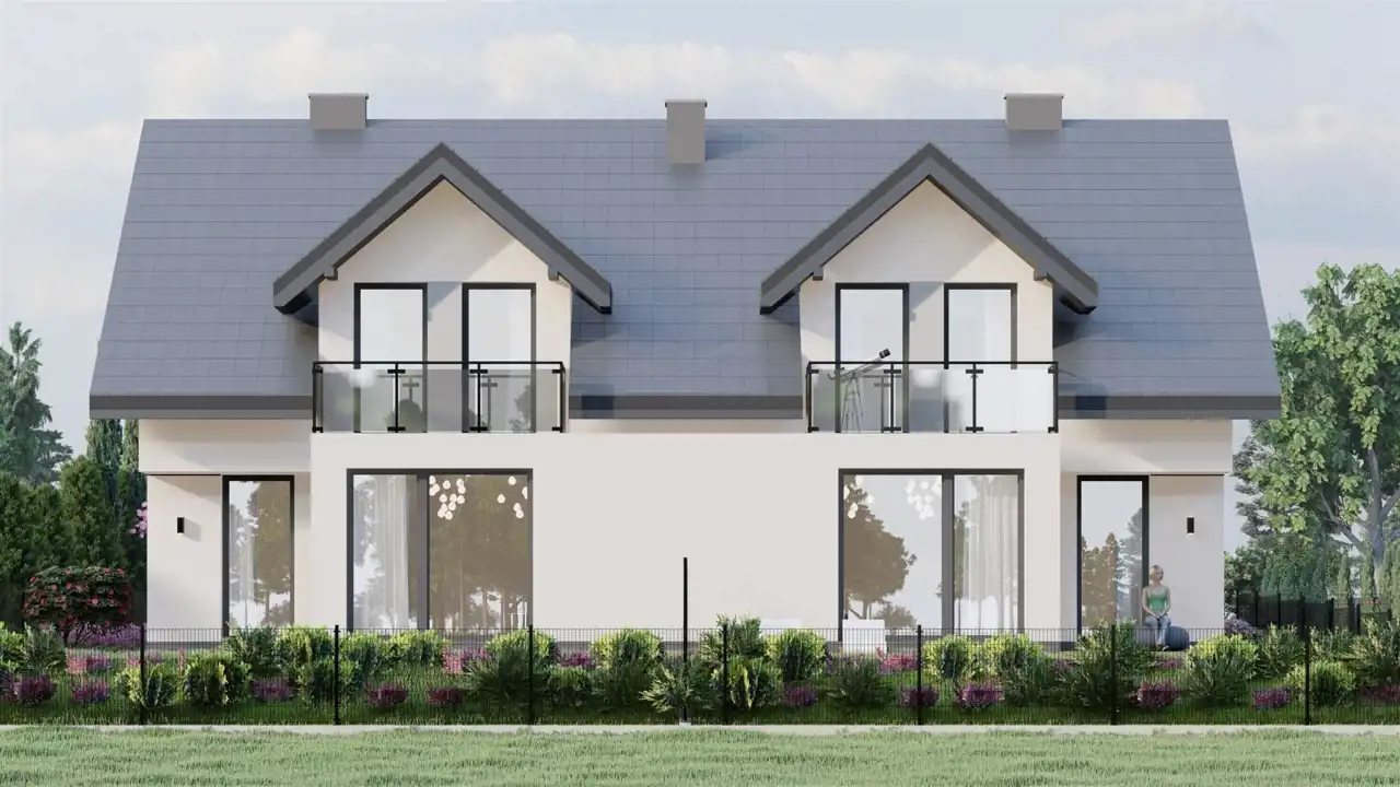 Dom z przynależnymi: balkonem, garażem ulokowanym w bryle budynku oraz dwoma miejscami postojowymi, wpisujący się w najnowsze trendy budownictwa. Dojazd drogą powiatową, następnie drogą prywatną utwardzoną.