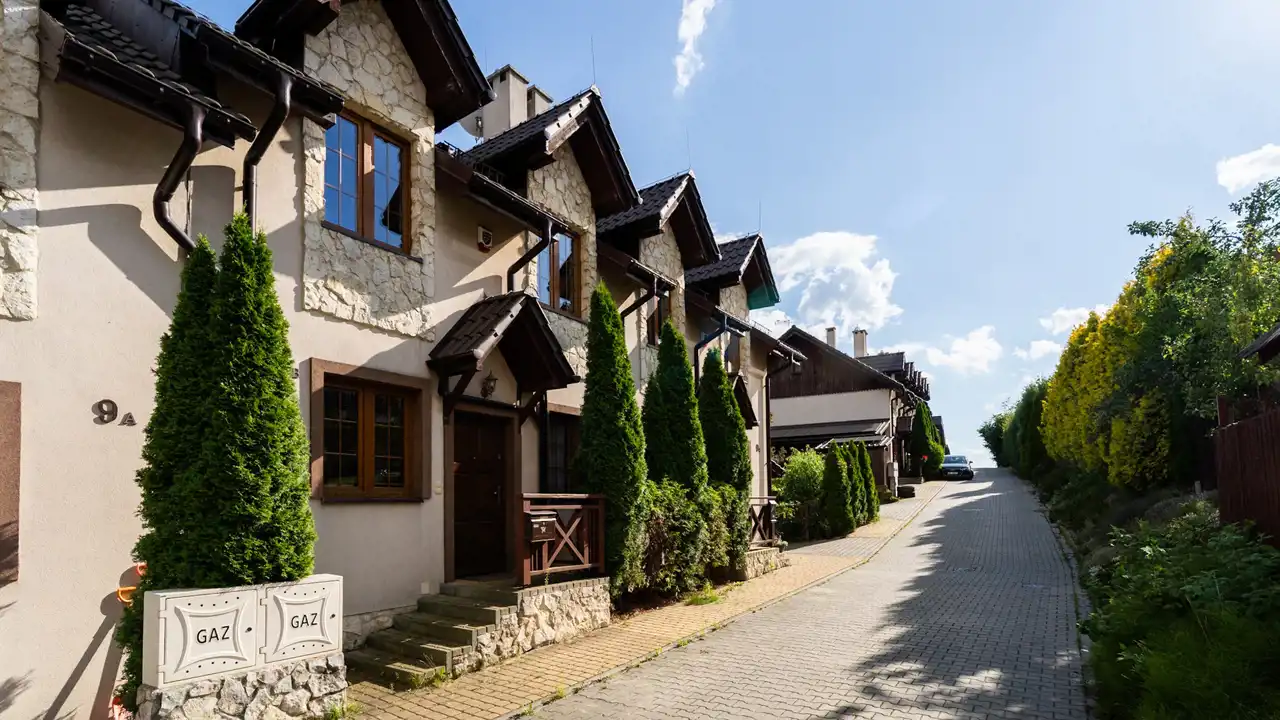 Osiedle domów w zabudowie szeregowej przy ulicy Leśnej w Bibicach tworzy klimatyczny kompleks.