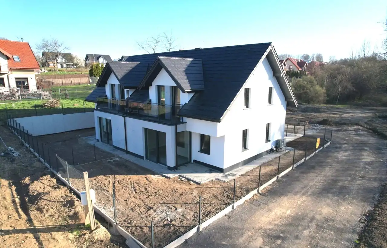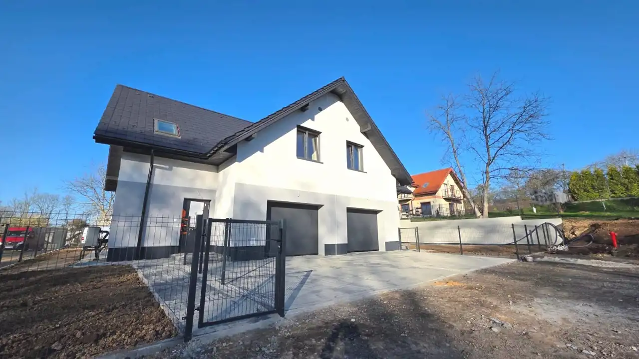 Dom z przynależnymi: balkonem, garażem ulokowanym w bryle budynku oraz dwoma miejscami postojowymi, wpisujący się w najnowsze trendy budownictwa. Dojazd drogą powiatową, następnie drogą prywatną utwardzoną.
