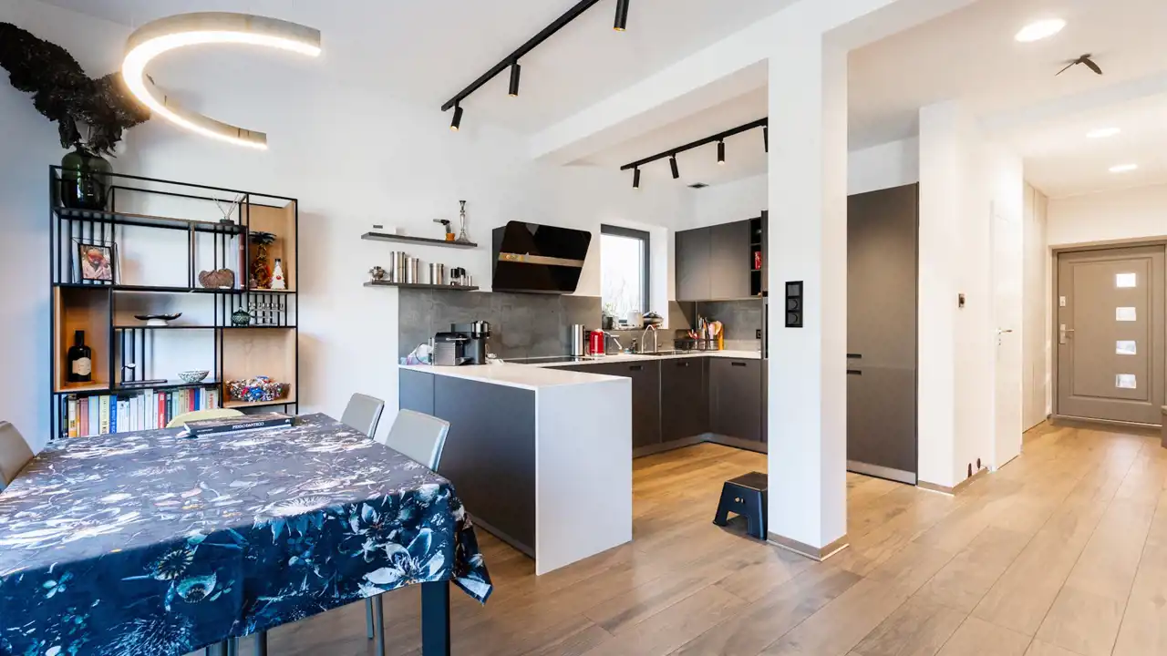Dom wybudowany był w 2012 roku, w 2022 roku przeszedł gruntowny remont. Nieruchomość składa się z dwóch kondygnacji oraz strychu służącego jako dodatkowy schowek.