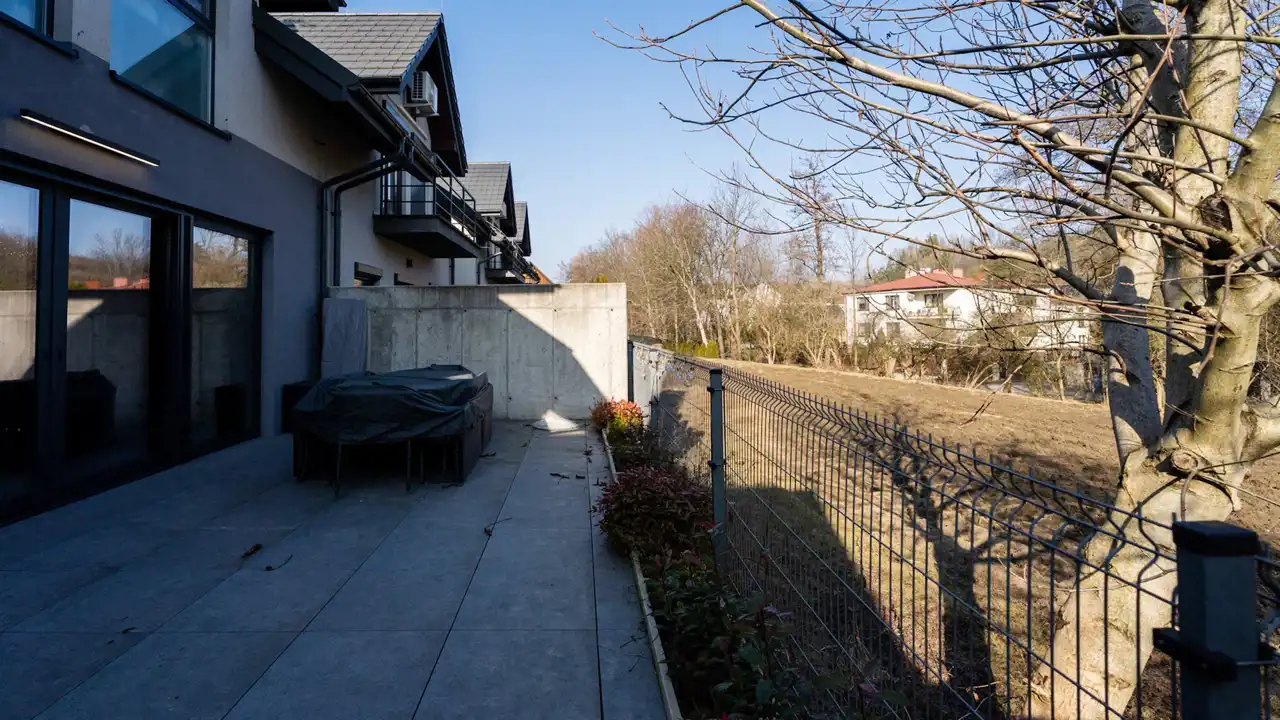 Nieruchomość znajduje się na zamkniętym osiedlu 4 bliźniaków, teren inwestycji jest ogrodzony z elektryczną bramną wjazdową.