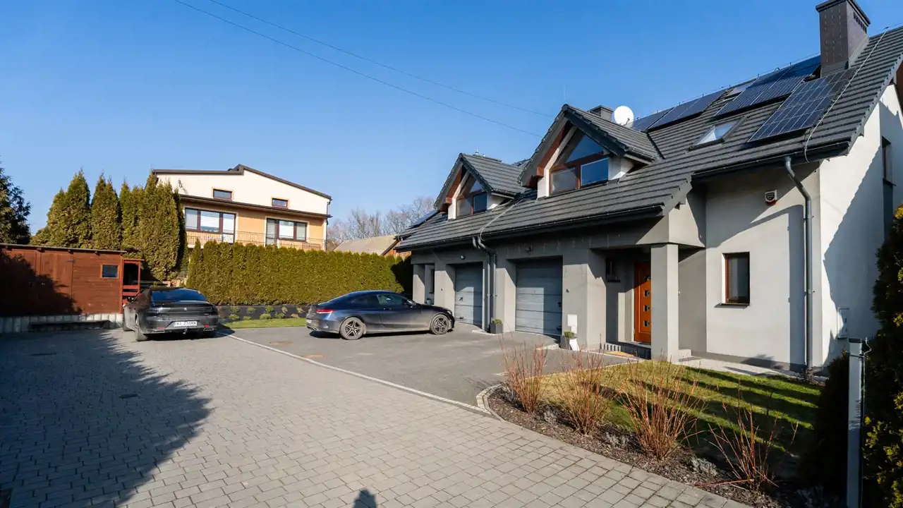 Przed domem dostępne są dwa lub trzy miejsca postojowe zewnętrzne.