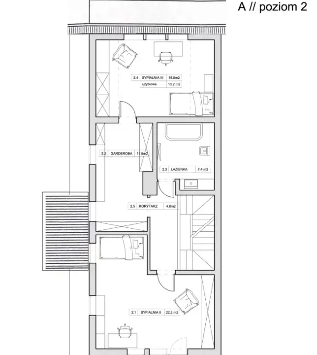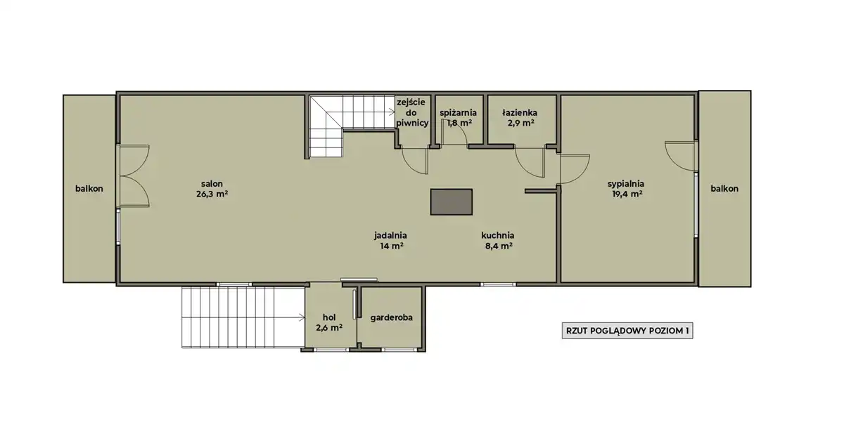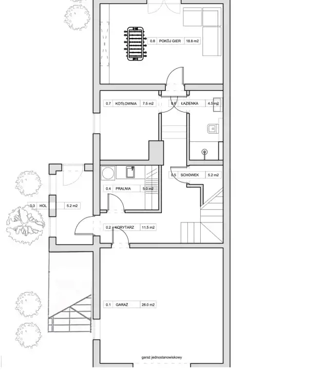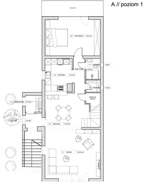 - kuchnia z jadalnią, częściowo otwarta na salon,
