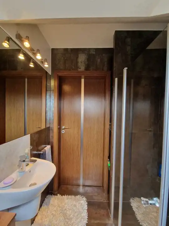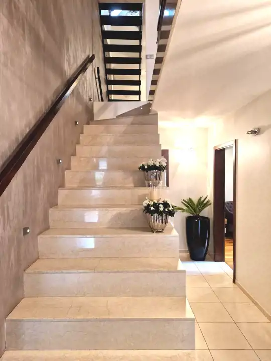 - schody wewnętrzne: marmur Sand Botticino + drewniane schody na poddasze,