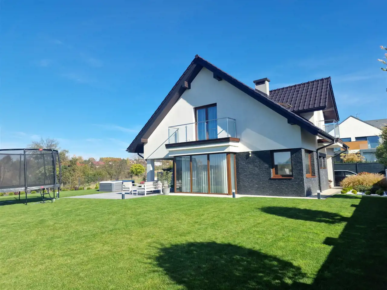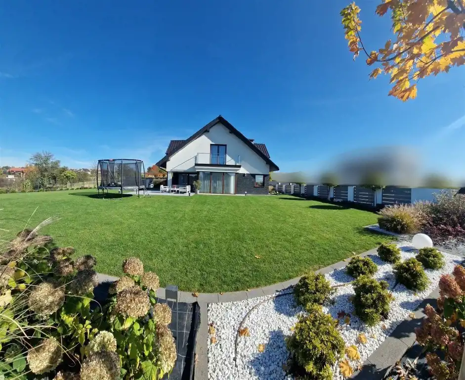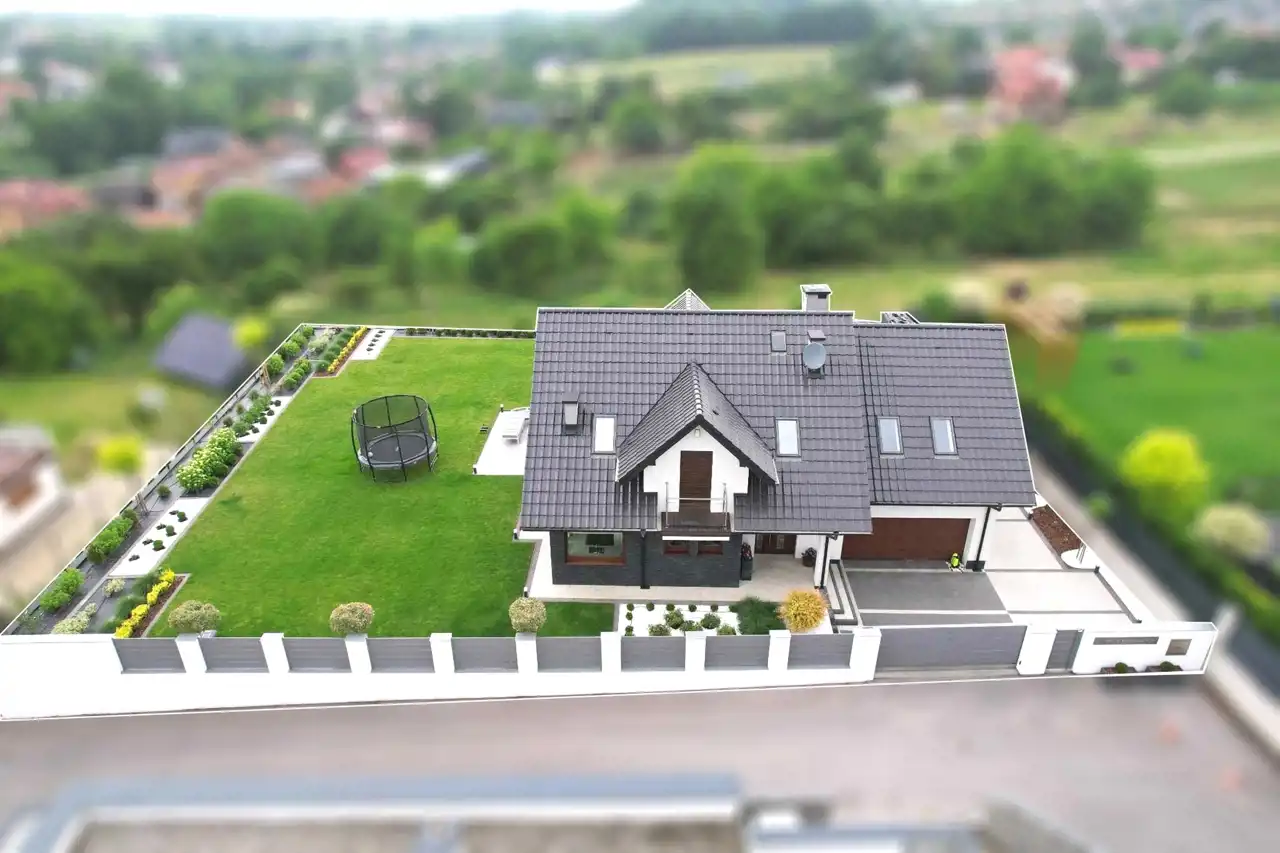 Do sprzedania nowoczesny, wolnostojący dom premium zlokalizowany w miejscowości Bibice, gm. Zielonki. Dom o pow. podłóg 230,71m2, pow. użytkowej 141,68m2 usytuowany na przestronnej, zadbanej i ogrodzonej działce o pow. 11,96 ara. Nieruchomość położona w sąsiedztwie nowych domów jednorodzinnych w IV linii zabudowy. Dojazd drogą gminną asfaltową, następnie drogą prywatną (udział). Działka płaska, w kształcie zbliżonym do prostokąta o dogodnych wymiarach: 38m/ 30m/ 39m/ 32m. Do budynku przynależą trzy balkony, spory taras oraz garaż. Dom nie wymaga wkładu własnego - jest gotowy do zamieszkania. Bardzo wysoki standard wykończenia!