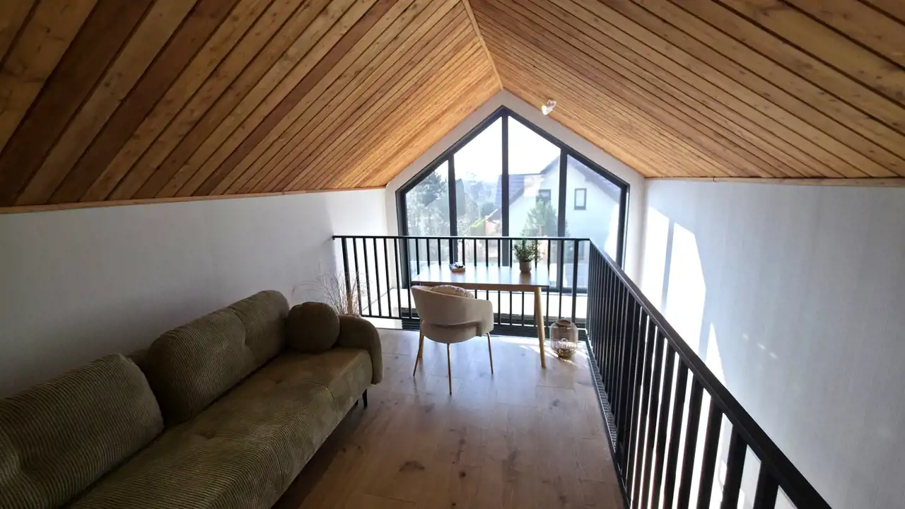 Antresola: pokój (7m2), antresola (11,23m2) - razem 18,23m2