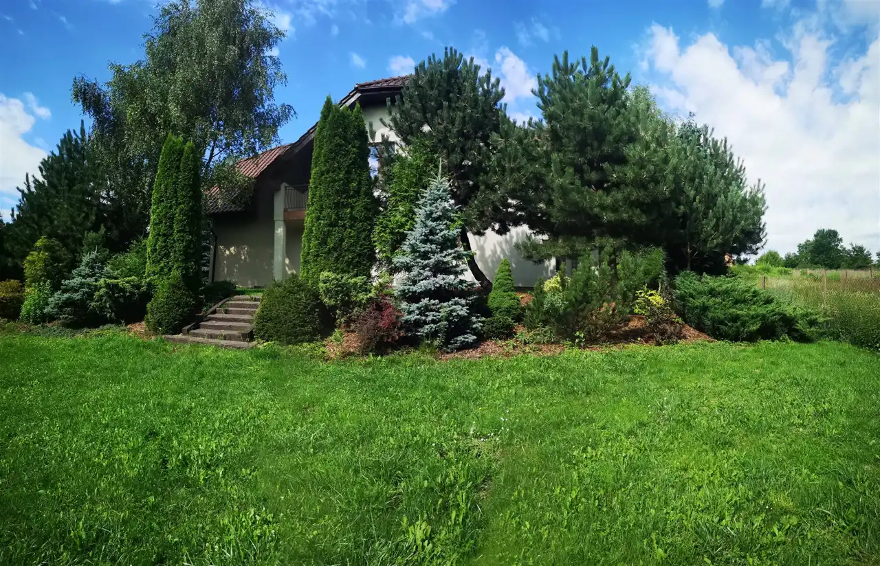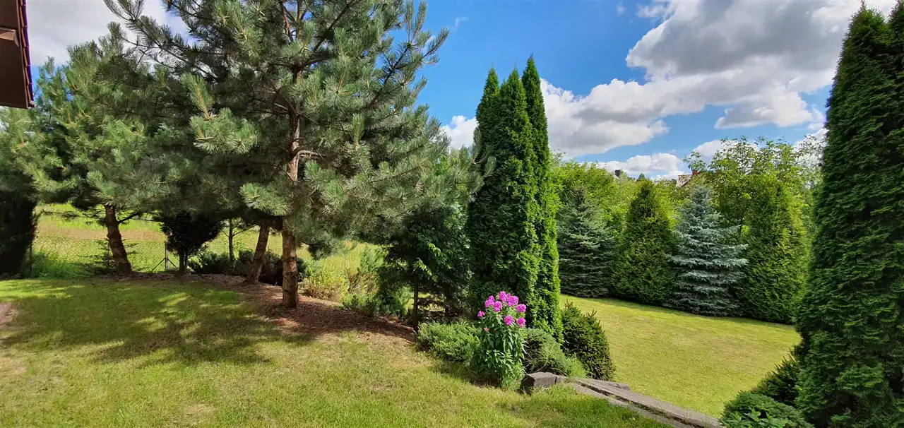 - Działka Zagospodarowana, lekko nachylona, trapez