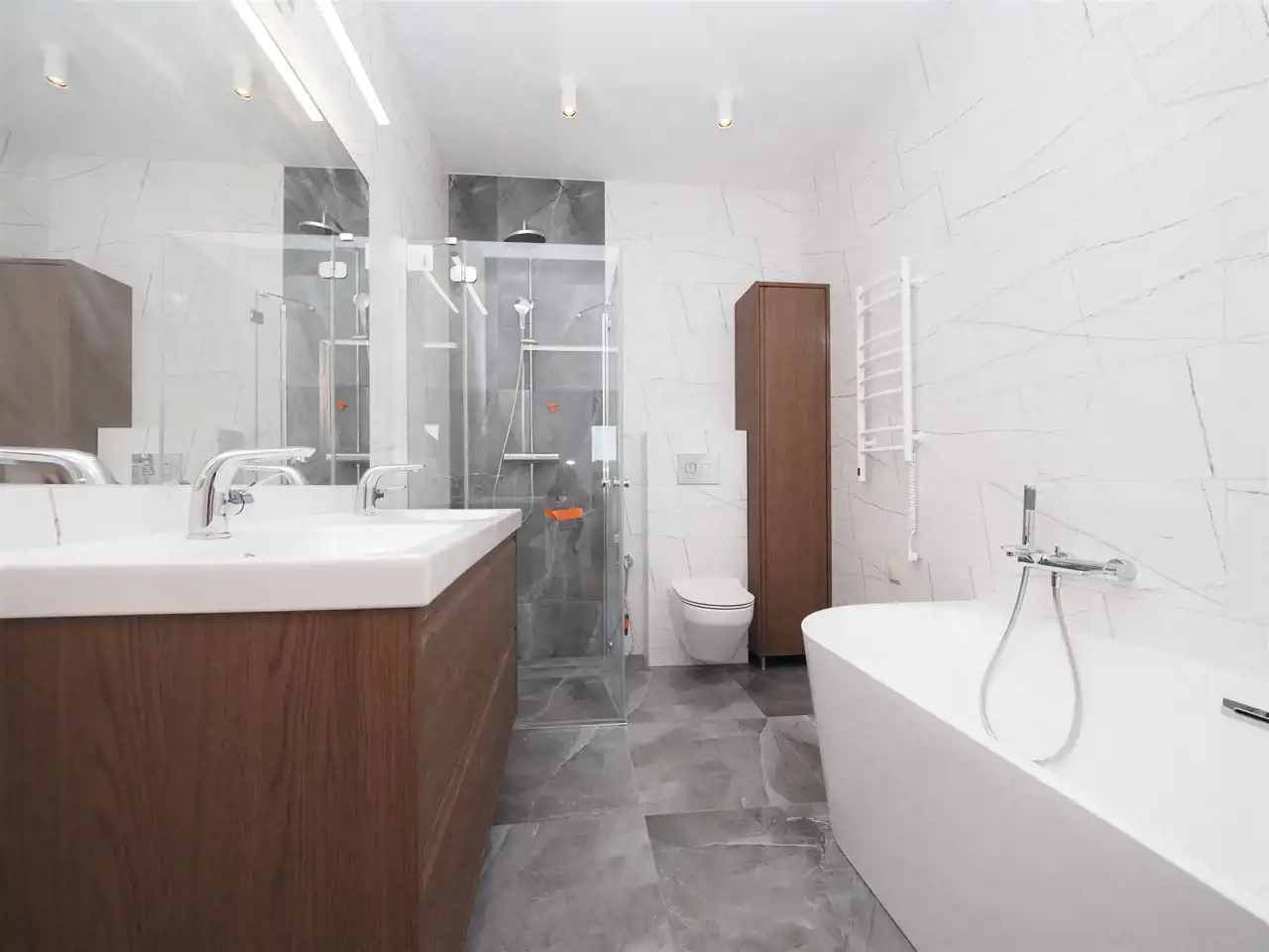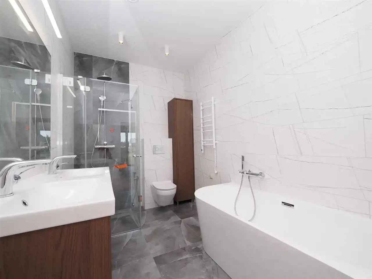- łazienka z prysznicem i wanną.