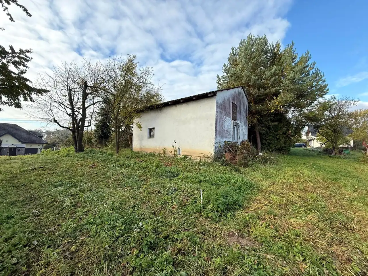 Na działce wolnostojący dom jednorodzinny o pow. zabudowy ok. 100m2 do remontu lub wyburzenia. Dodatkowo na działce wolnostojący budynek gospodarczy/garaż o pow. zabudowy 48m2. Możliwość zakupu działki o mniejszej powierzchni - bez budynków.