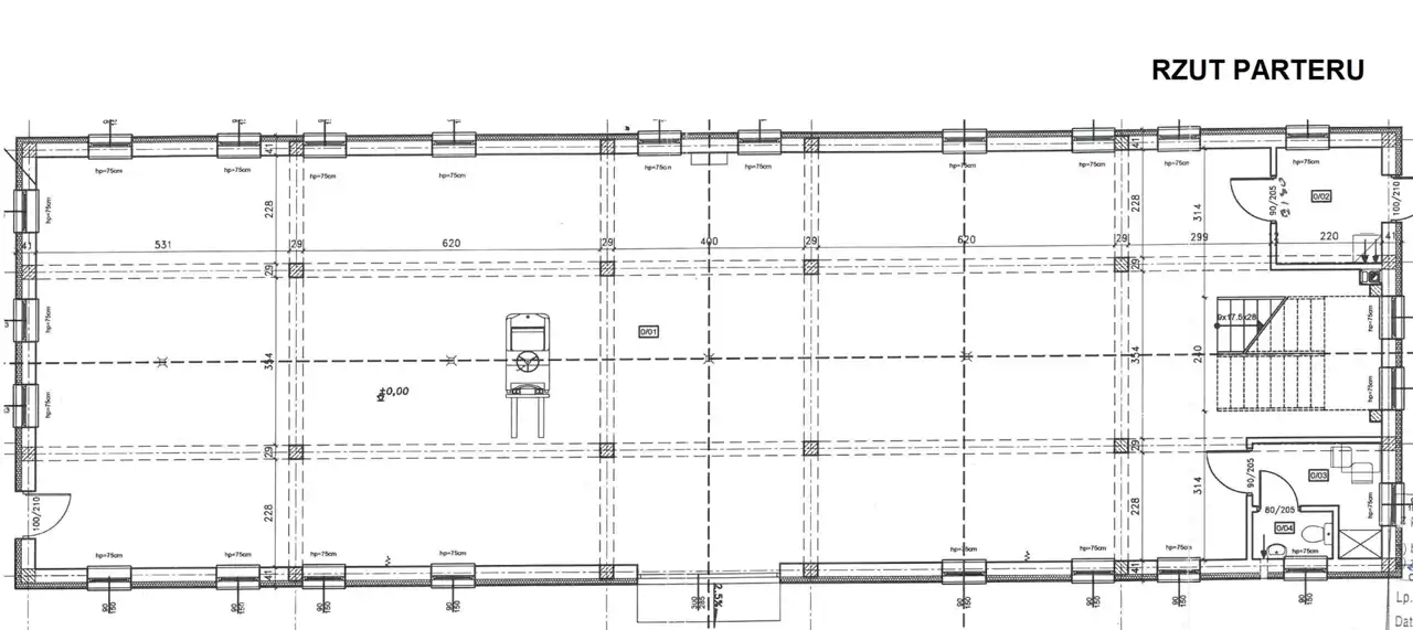 Parter: magazyn (22,9m2), kotłownia (5,4m2), pom. socjalne (4,6m2), WC (1,7m2) - razem 234,6m2