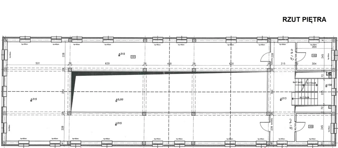 Piętro: magazyn (144,5m2), biuro (7,5m2), biuro (7,5m2) - 159,5m2
