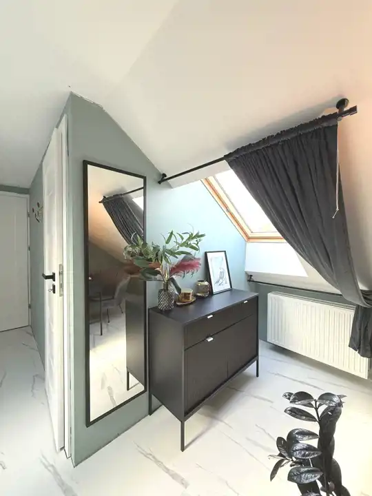 Poddasze: otwarta przestrzeń (sypialnia, garderoba, toaletka) ok. 30m2