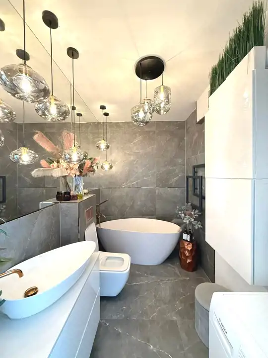 - w łazience wolnostojąca wanna,