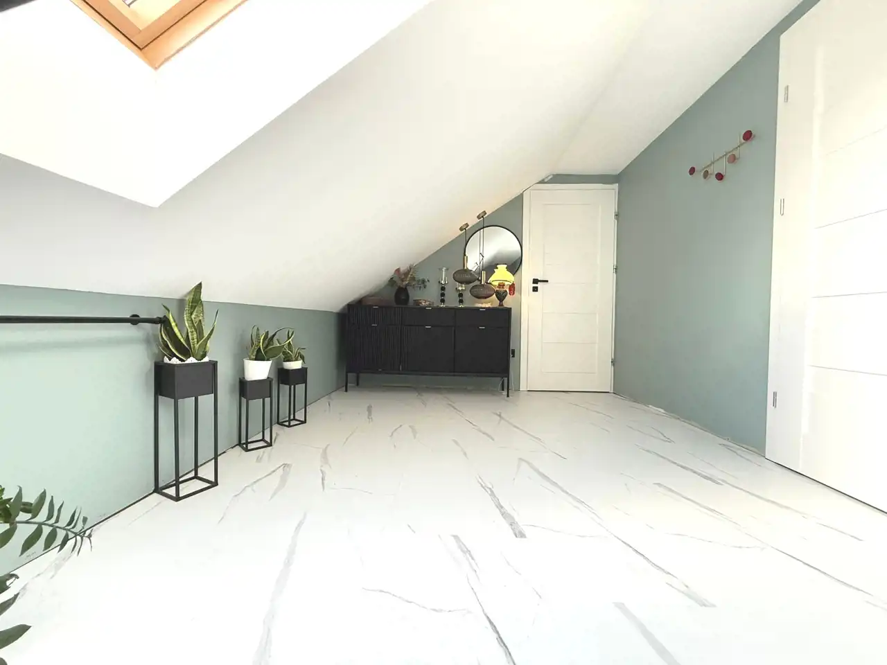 Poddasze: otwarta przestrzeń (sypialnia, garderoba, toaletka) ok. 30m2