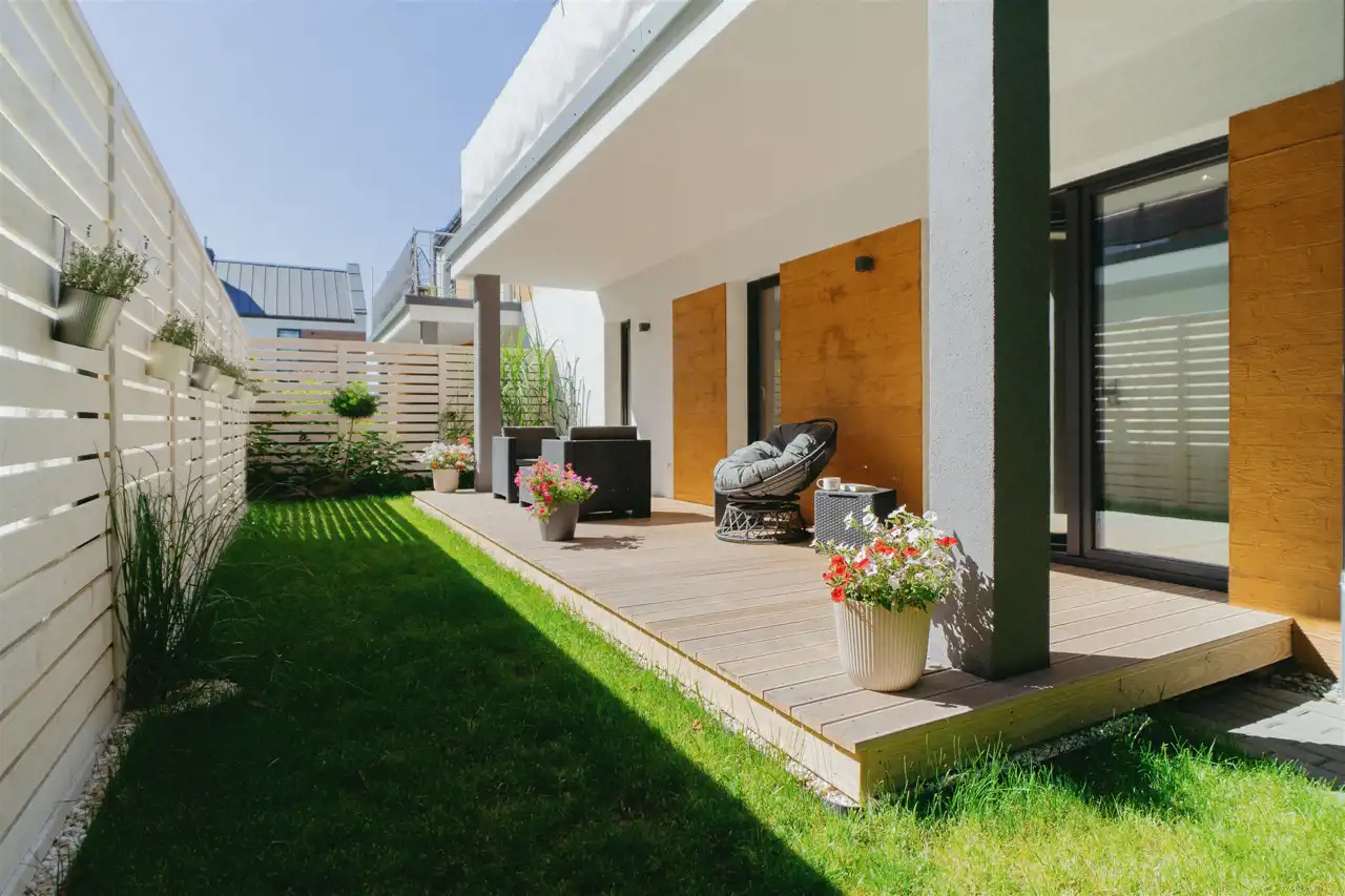- Ogródek z tarasem – idealny dla rodziny, dzieci lub miłośników relaksu na świeżym powietrzu.