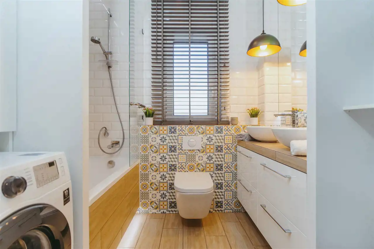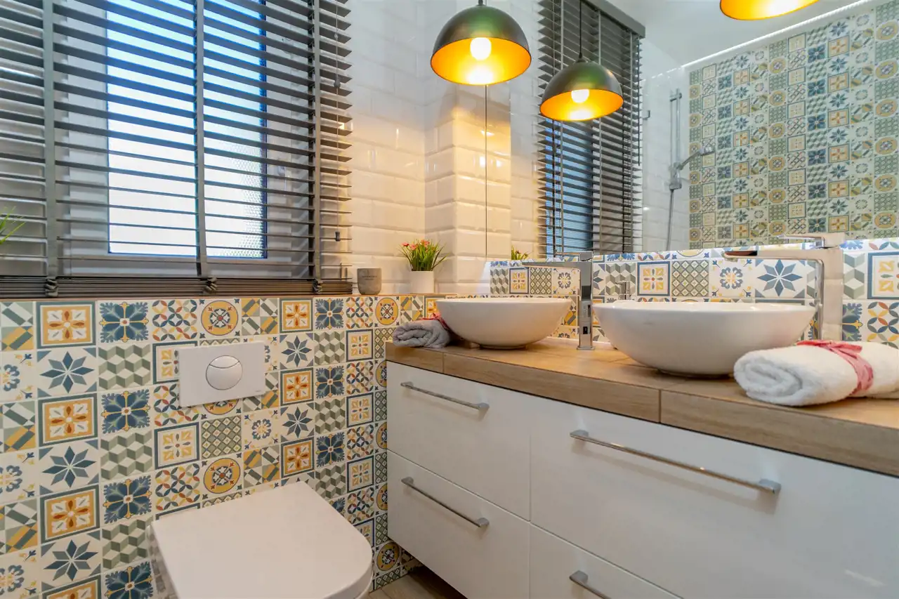 - elegancka łazienka z wanną i oknem,