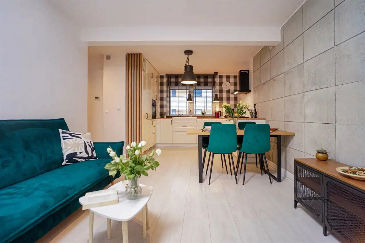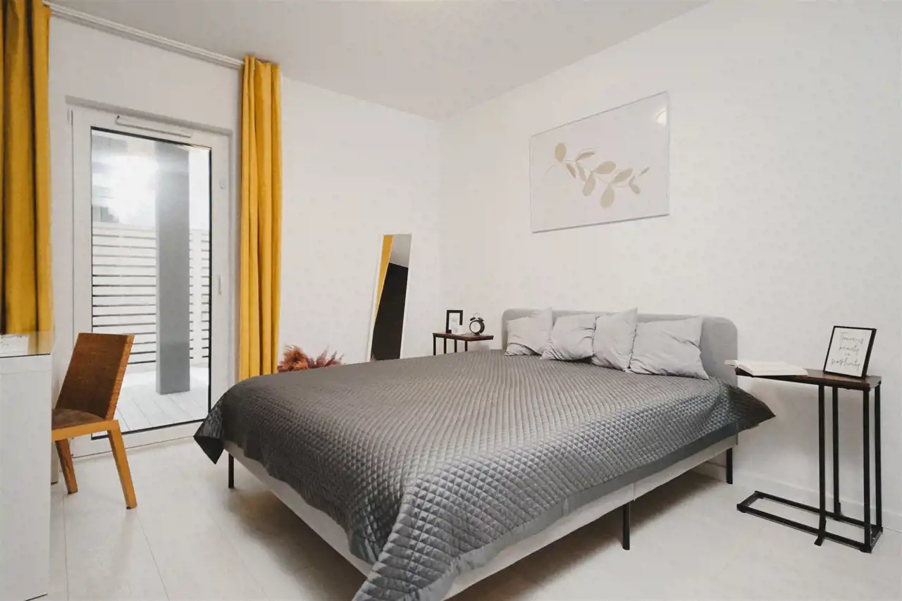 Wnętrze jest stylowo urządzone i gotowe do wprowadzenia – bez dodatkowych nakładów finansowych. Mieszkanie mieści się na parterze nowoczesnego budynku z 2019 roku, w zabudowie bliźniaczej, co gwarantuje kameralność i poczucie prywatności.