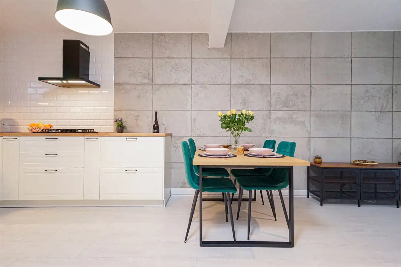 - przestronny salon połączony z w pełni wyposażoną kuchnią,