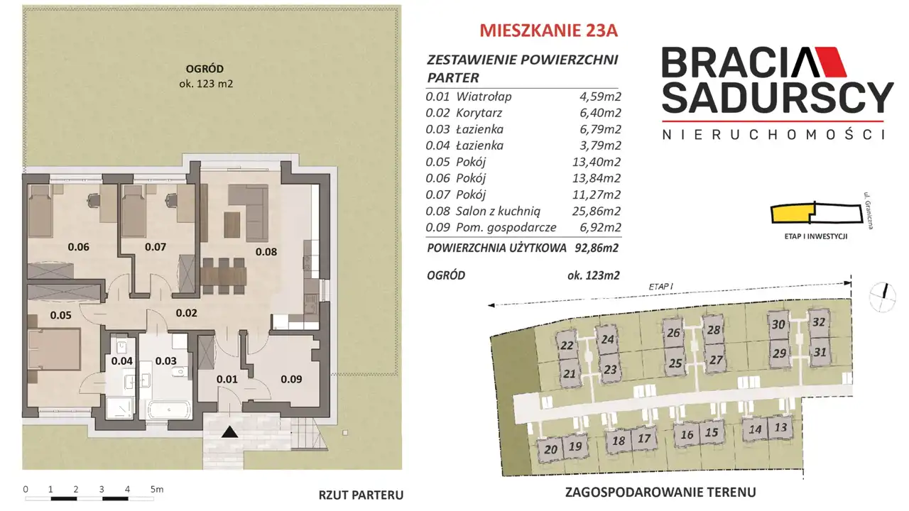Oferowane mieszkanie znajduje się na parterze, posiada powierzchnię 93,86 m2 i przynależny do niego ogród o powierzchni 123 m2 ,