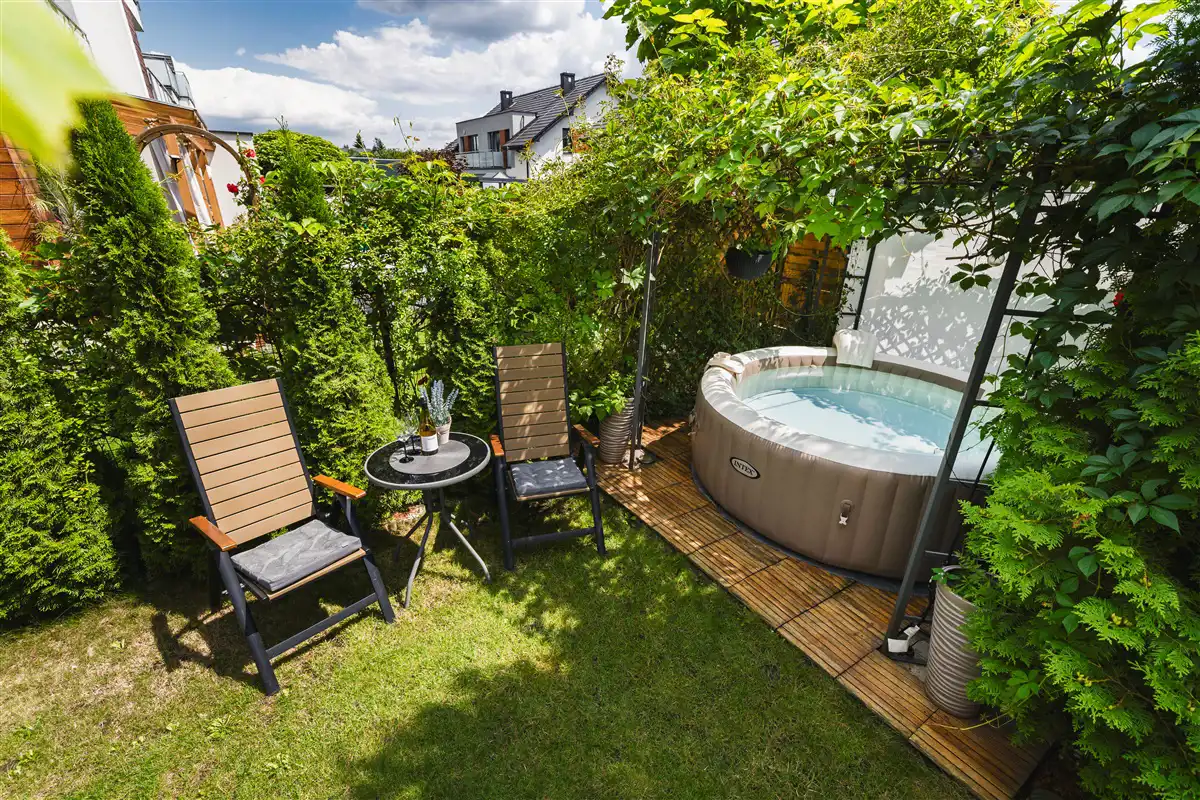 - urządzony ogród z jacuzzi o powierzchni około 134 m2,