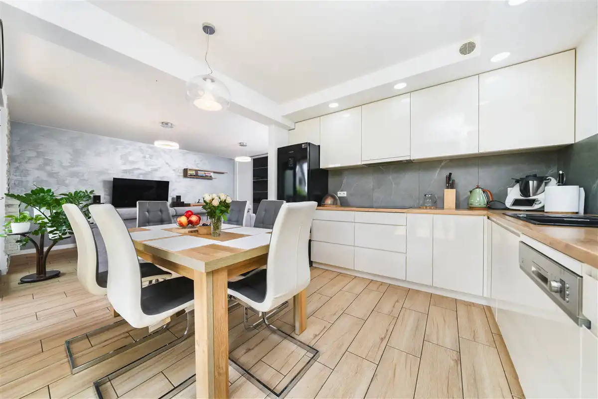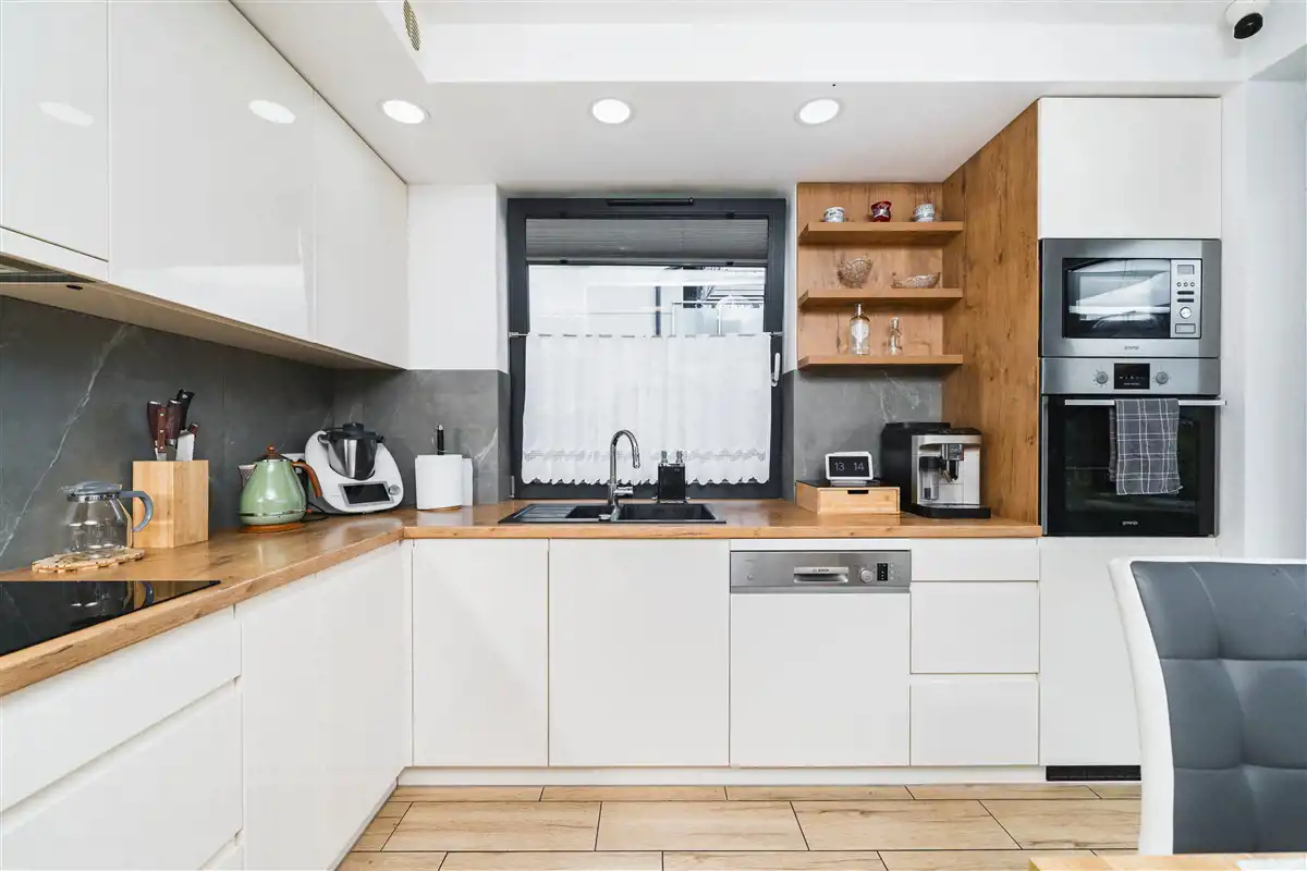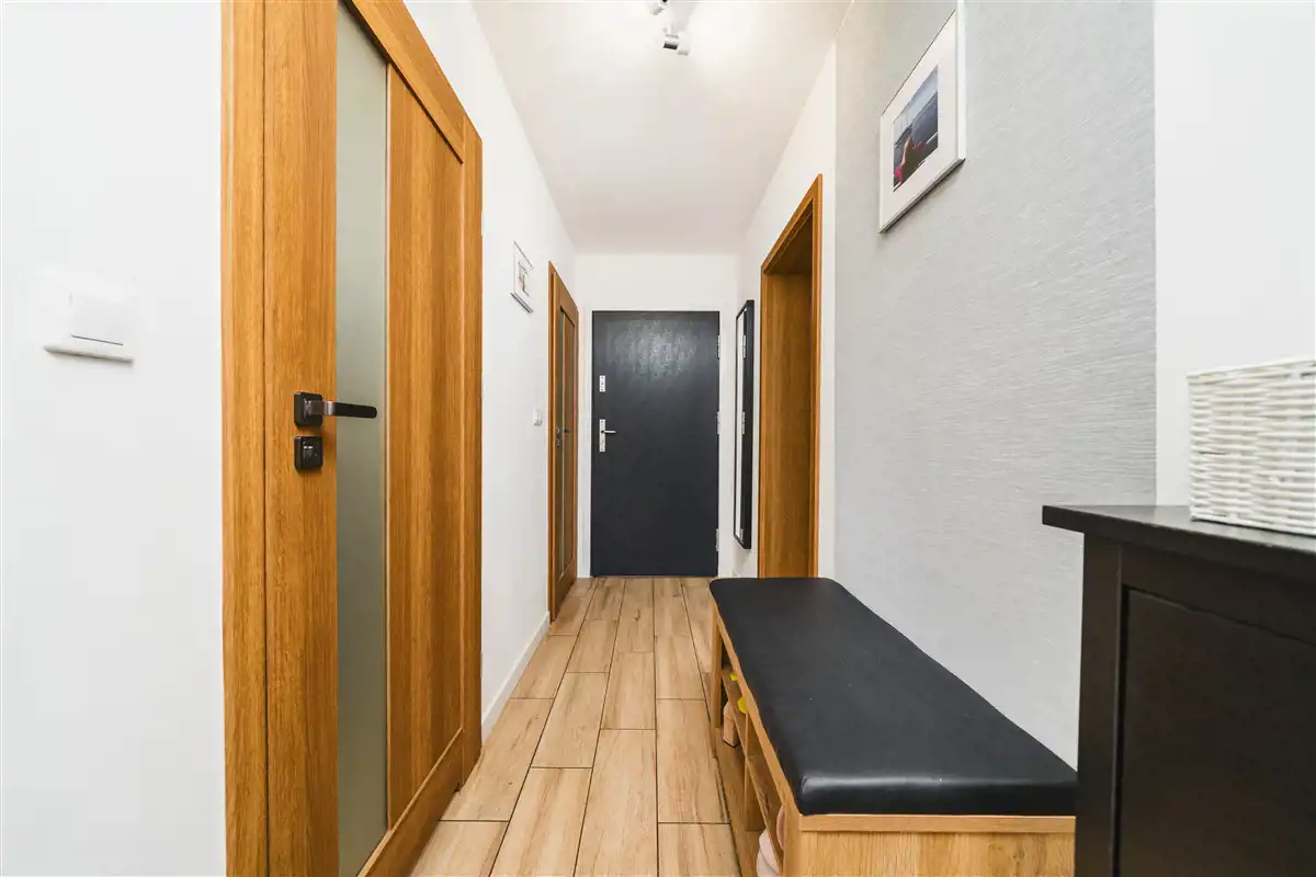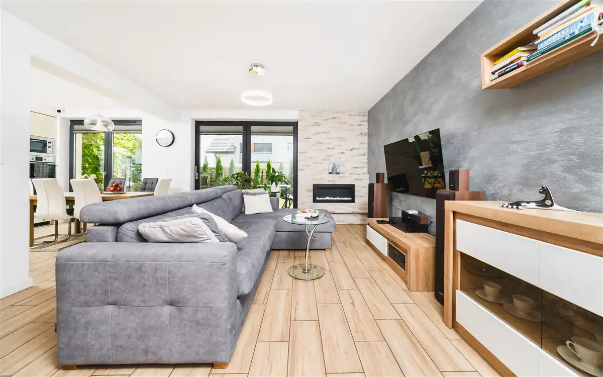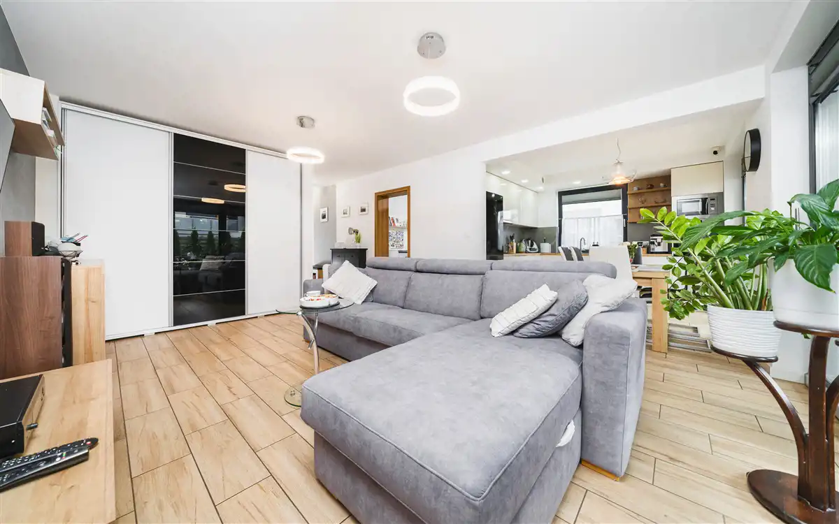 Mieszkanie o powierzchni użytkowej 62,40 m2 zlokalizowane na parterze 1 piętrowego budynku, który został wybudowany w 2019 roku. Do mieszkania przynależy ogród o powierzchni około 134 m2, na którym znajduje się taras o powierzchni około 14 m2 wykonany z deski eukaliptusowej. Wyposażanie ogrodu takie jak jacuzzi, drewniany domek narzędziowy oraz skrzynia magazynowa pozostaje w cenie. Wystawa mieszkania na 2 strony świata: południe oraz zachód. Dzięki dużej ilości przeszkleń mieszkanie jest bardzo jasne. Salon oraz ogród zwrócone są na stronę południową. Mieszkanie wykończone bardzo wysokiej jakości materiałami. Aneks kuchenny wykonany z mebli na wymiar. Kuchnia wyposażona w lodówkę, płytę indukcyjną, piekarnik, mikrofale, okap oraz zmywarkę. W łazience znajduje się duży prysznic, meble na wymiar oraz pralka. W salonie znajduje się biokominek. Okna PCV 3 szybowe. Duże okno przesuwne HST w salonie. Ogrzewanie mieszkania oraz ciepła woda z pieca gazowego znajdującego się w łazience. Ogrzewanie podłogowe w całym mieszkaniu. Brak czynszu administracyjnego. Płacimy wyłącznie za zużyte media, dzięki czemu mieszkanie jest bardzo tanie w utrzymaniu. Oscylacyjne miesięczne koszty utrzymania wynoszą około 500 zł przy trzech osobach. Mieszanie wyposażone jest w zmiękczacz wody.