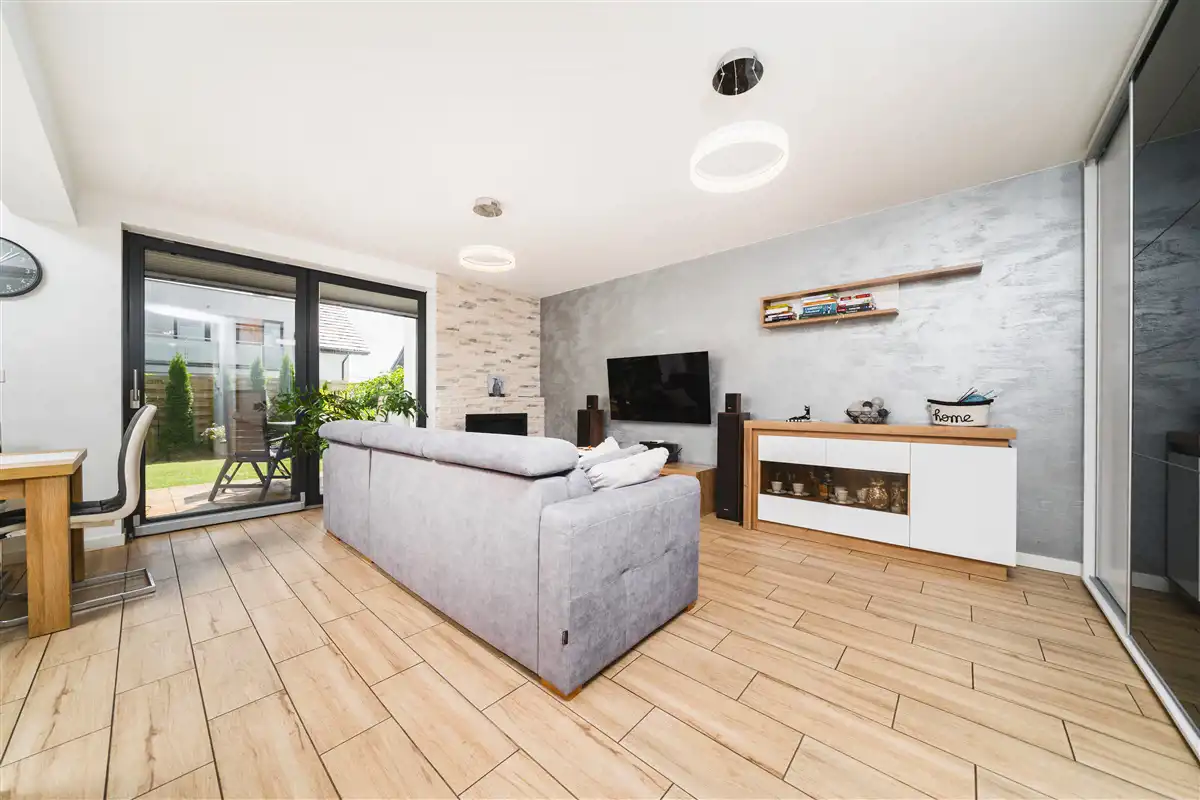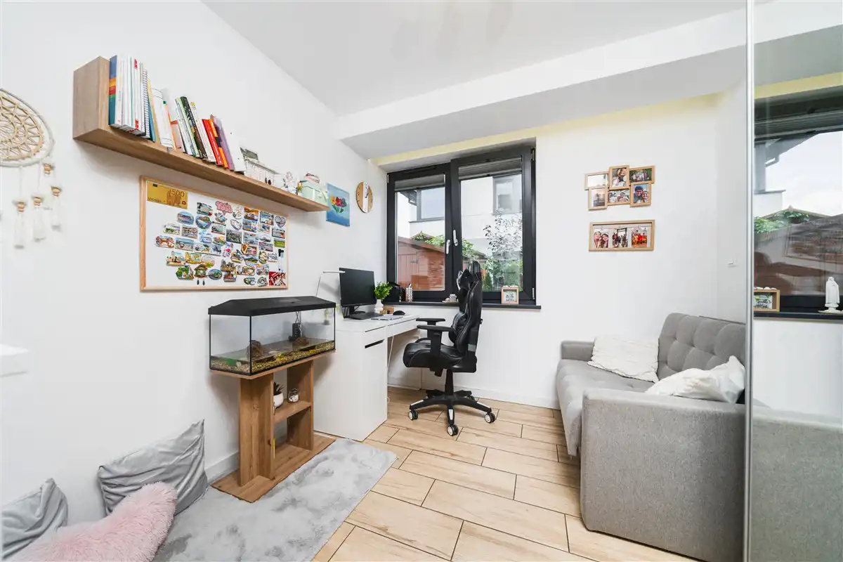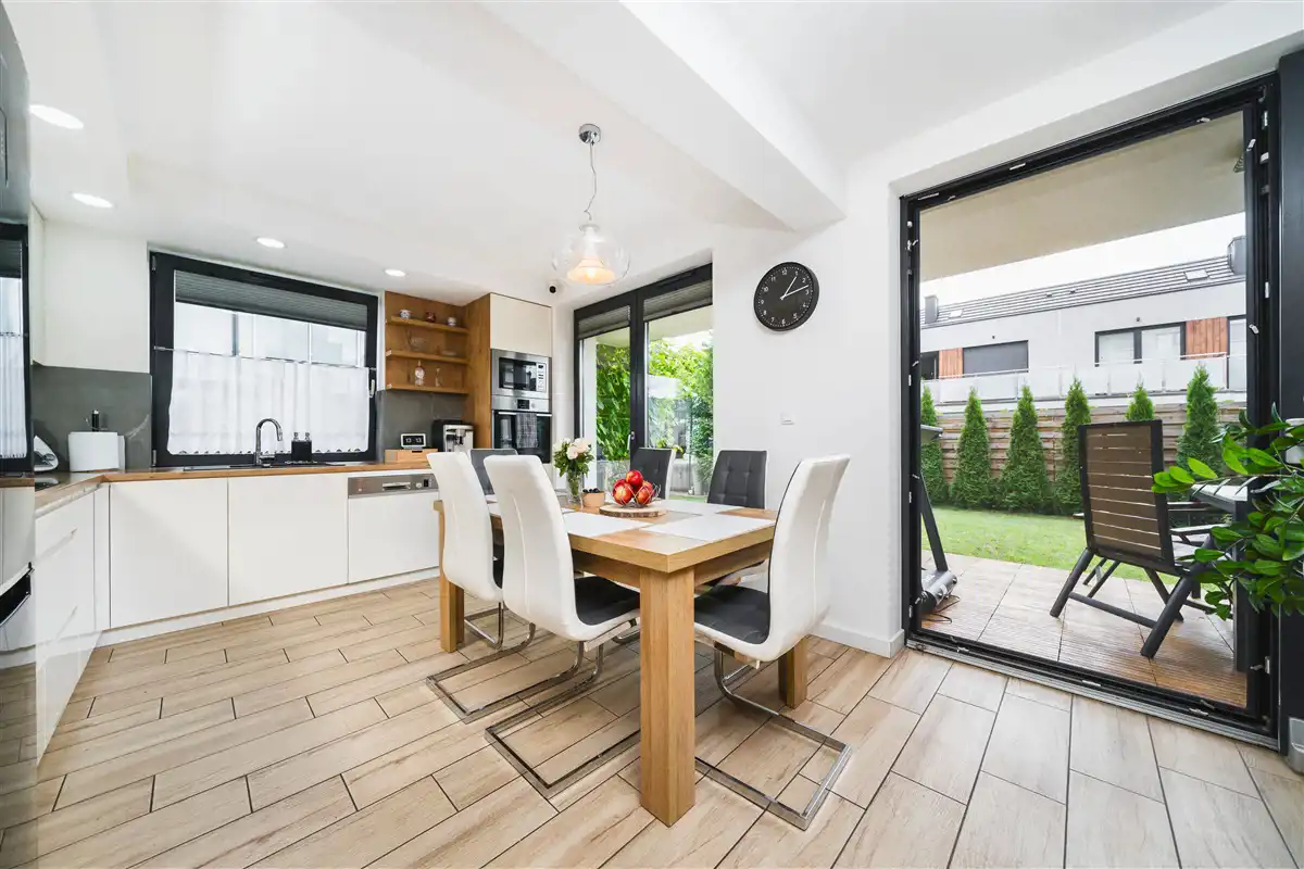 Mieszkanie o powierzchni użytkowej 62,40 m2 zlokalizowane na parterze 1 piętrowego budynku, który został wybudowany w 2019 roku. Do mieszkania przynależy ogród o powierzchni około 134 m2, na którym znajduje się taras o powierzchni około 14 m2 wykonany z deski eukaliptusowej. Wyposażanie ogrodu takie jak jacuzzi, drewniany domek narzędziowy oraz skrzynia magazynowa pozostaje w cenie. Wystawa mieszkania na 2 strony świata: południe oraz zachód. Dzięki dużej ilości przeszkleń mieszkanie jest bardzo jasne. Salon oraz ogród zwrócone są na stronę południową. Mieszkanie wykończone bardzo wysokiej jakości materiałami. Aneks kuchenny wykonany z mebli na wymiar. Kuchnia wyposażona w lodówkę, płytę indukcyjną, piekarnik, mikrofale, okap oraz zmywarkę. W łazience znajduje się duży prysznic, meble na wymiar oraz pralka. W salonie znajduje się biokominek. Okna PCV 3 szybowe. Duże okno przesuwne HST w salonie. Ogrzewanie mieszkania oraz ciepła woda z pieca gazowego znajdującego się w łazience. Ogrzewanie podłogowe w całym mieszkaniu. Brak czynszu administracyjnego. Płacimy wyłącznie za zużyte media, dzięki czemu mieszkanie jest bardzo tanie w utrzymaniu. Oscylacyjne miesięczne koszty utrzymania wynoszą około 500 zł przy trzech osobach. Mieszanie wyposażone jest w zmiękczacz wody.