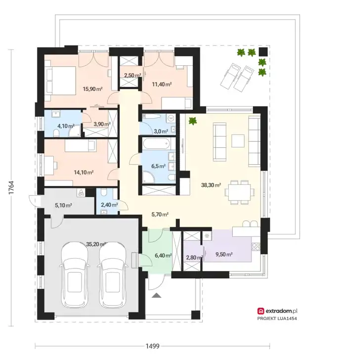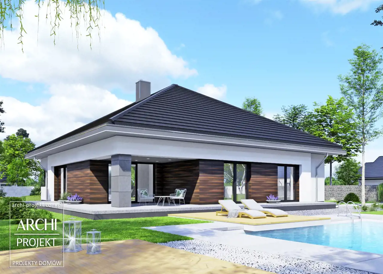 Dom charakteryzuje się nowoczesnym i praktycznym układem pomieszczeń, idealnym dla rodziny Najważniejsze atuty: