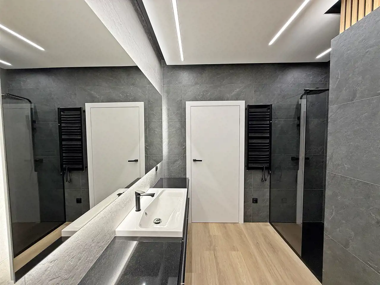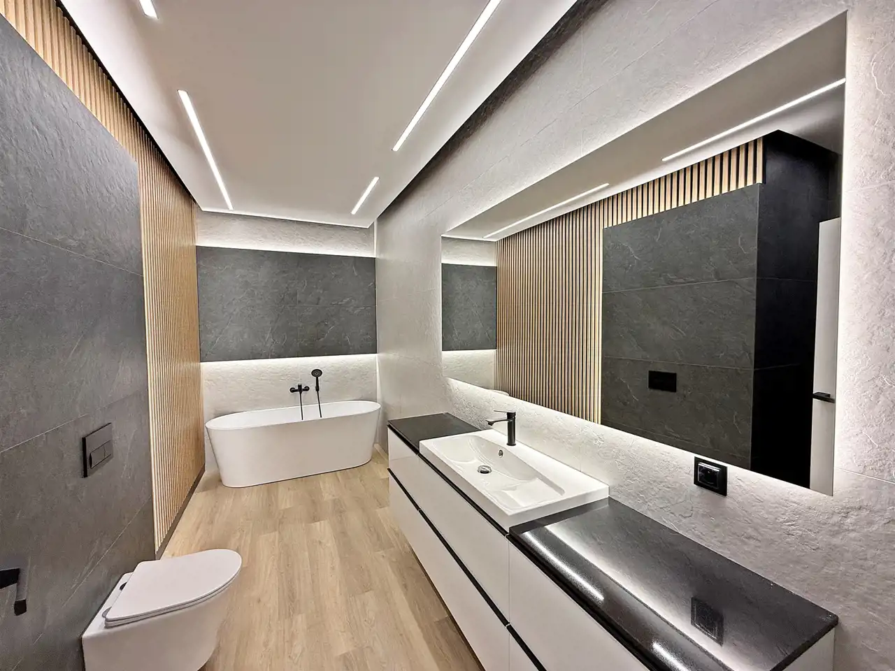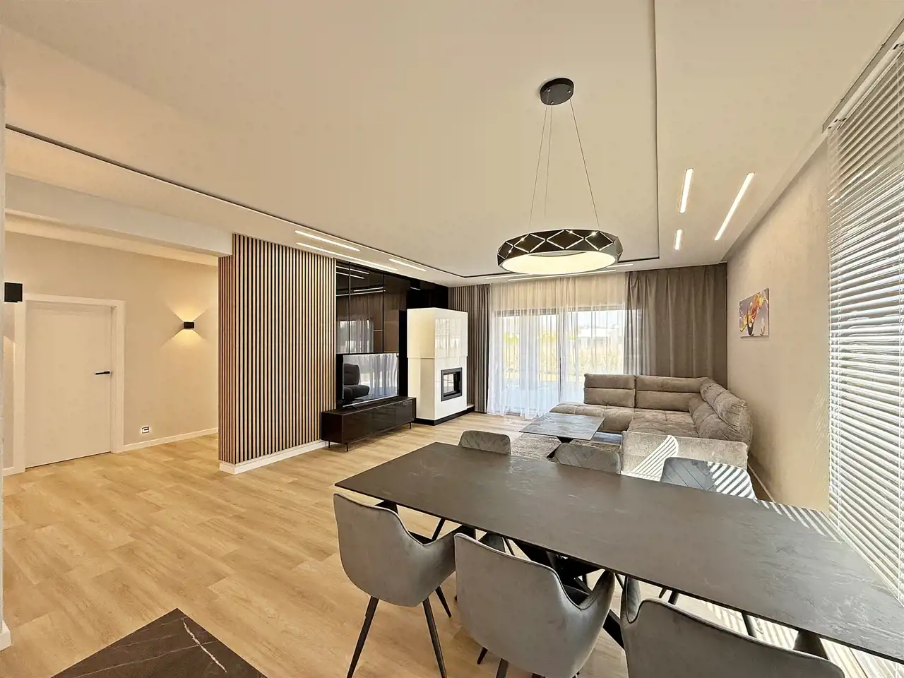 Wnętrze domu zostało wykończone wysokiej jakości materiałami z przywiązaniem uwagi do każdego detalu.