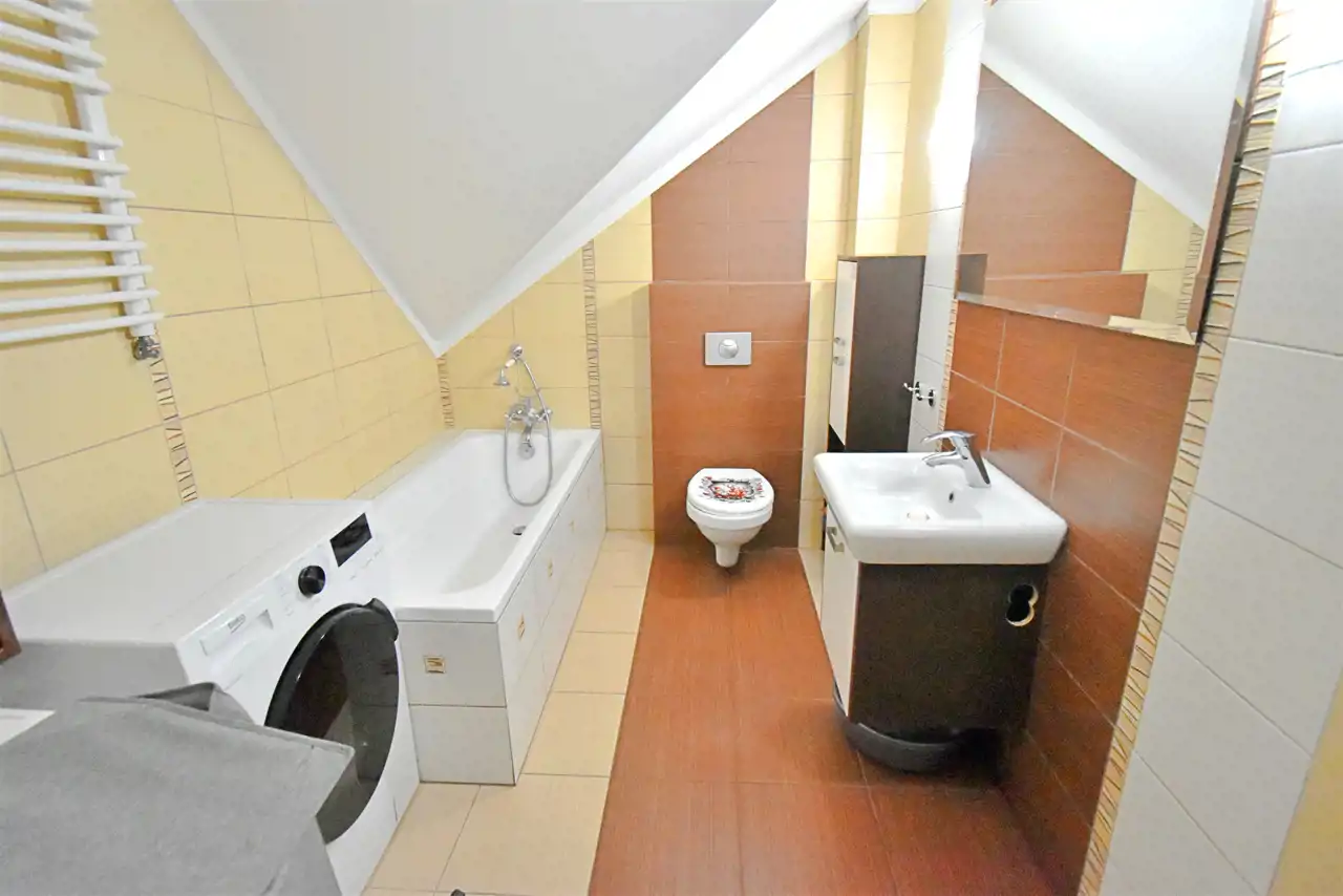 Poddasze użytkowe: przedpokój 8,14 m2, sypialnia 16,64 m2, sypialnia 16,27 m2, sypialnia 19,07 m2,gabinet 13 m2,klatka schodowa 3,25 m2,łazienka 10,85 m2, łazienka 6,71 m2.
