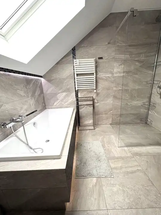 Dodatkowo nowa łazienka z wanną i prysznicem oraz zabudowa kuchenna ze sprzętem AGD.