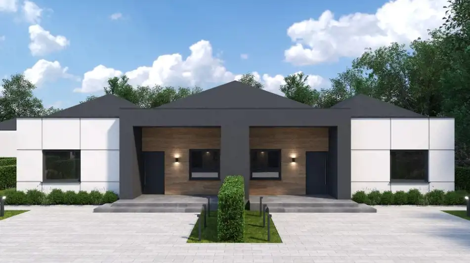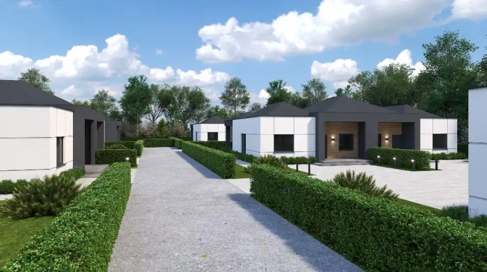 Oferowane domy stanowią nową inwestycję, w ramach której powstaną 4 budynki w zabudowie bliźniaczej oraz jeden dom wolnostojący