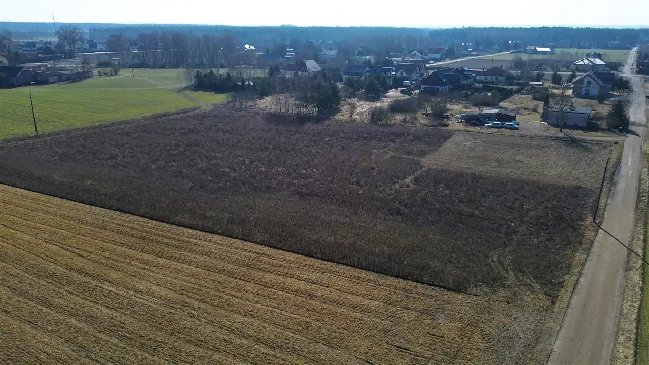 Optymalne parametry: Teren jest płaski, suchy i całkowicie pusty. Regularny kształt (prostokąty) pozwala na maksymalne wykorzystanie przestrzeni, bezproblemowe usytuowanie domu i łatwe zaprojektowanie ogrodu.
