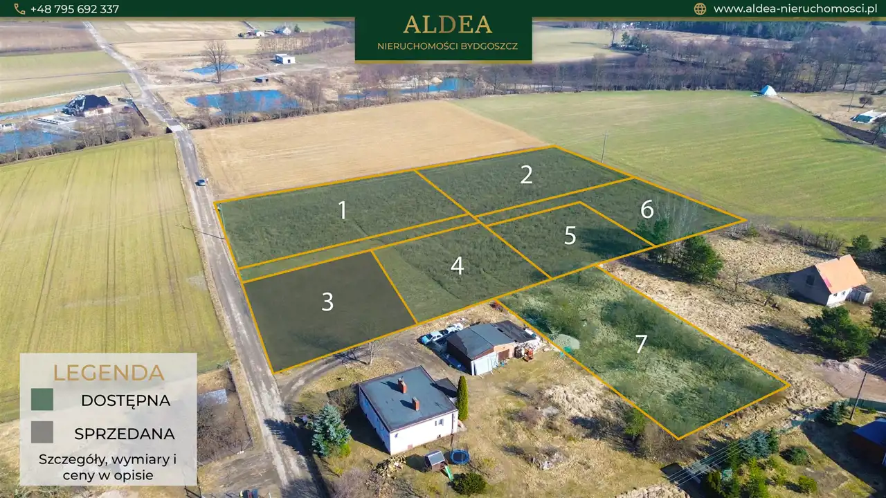 Poniżej przedstawiamy zestawienie aktualnie dostępnych parceli. Numery odpowiadają oznaczeniom na załączonej mapie: